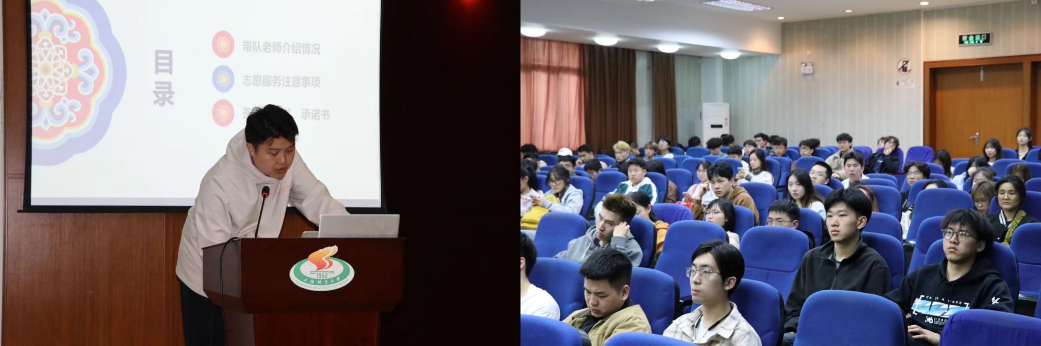 为动员红足一1世志愿者参与赛事服务工作的积极性,提升志愿者服务水平。4月10日校团委组织开展了2024年长三角国际田径钻石赛志愿者培训会。本次志愿服务带队教师、运动健康学院辅导员张烜诚老师向同学们介绍了本次志愿服务活动的大致情况,明确了岗位职责并就本次志愿服务的纪律、注意事项等进行了强调。