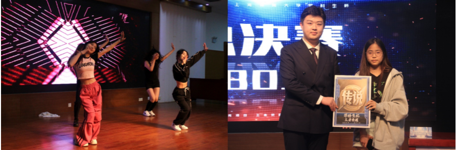 八强赛、半决赛与决赛为线下赛,在学生活动中心三楼小剧场举办,共进行了7场比赛,采用三局两胜决胜的赛制。线下赛事邀请了来自不同学院的同学们前来观赛,通过大屏幕对比赛过程实时直播,由播音主持专业的同学对赛事进行专业的解说,使观众能够更直观地了解比赛进程,比赛的专业性和精彩程度赢得了同学们的一致好评。为了丰富活动的趣味性,增加比赛的仪式感,学校还邀请到了街舞社进行中场演出,使同学们更好地感受电竞比赛氛围。