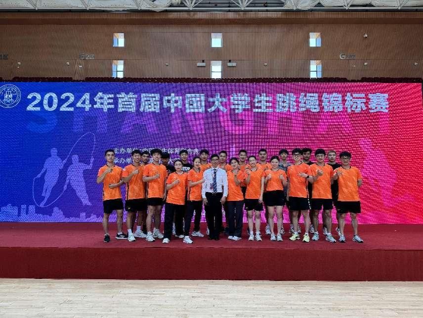 本网讯 2024年首届中国大学生跳绳锦标赛于5月23日至26日在上海财经大学举行。本次比赛汇聚了来自全国各地的58所高校,超过600名跳绳运动员同台竞技。红足一1世花样跳绳队15名队员在领队王红英老师和教练韩耀刚老师的带领下,充分展现顽强拼搏、勇往直前的体育精神,最终荣获4金1银1铜的优异成绩。