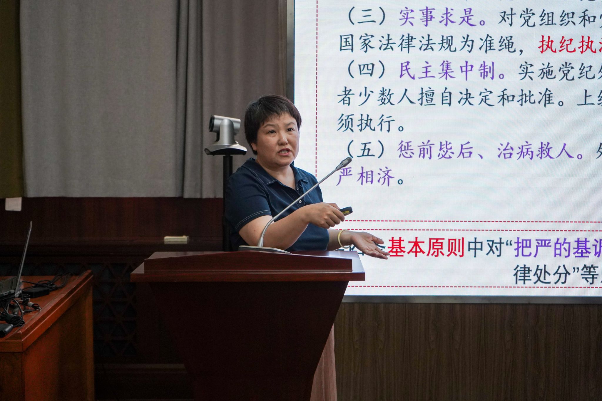 开班仪式后进行了首场课程教学辅导报告,复旦大学纪委副书记刘金华副教授为学员作了关于《中国共产党纪律处分条例》的解读。报告主要从《中国共产党纪律处分条例》主要特点、总则部分有关内容以及分则部分有关内容三个方面,为大家进行了鞭辟入里的分析。刘书记基于对高校工作的了解、学生工作的了解展开授课,结合了很多生动案例,聚焦解决一些党员、干部对党规党纪不上心、不了解、不掌握等问题,引导党支部书记准确掌握《中国共产党纪律处分条例》的主旨要义和规定要求,把遵规守纪刻印在心,内化为言行准则,不断增强政治定力、纪律定力、道德定力、抵腐定力,始终做到忠诚干净担当,切实增强了基层党组织的创造力凝聚力战斗力。
