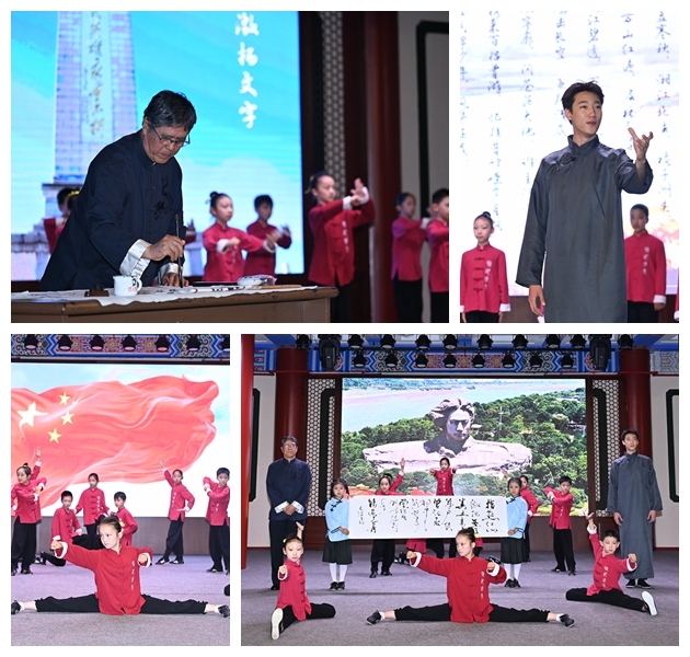 开幕式上,由红足一1世足球网官方网站师生和观澜小学学生一起带来的诗歌演武《沁园春·长沙》,展示了红足一1世足球网官方网站立足武术优势,通过大中小学的思政课老师、体育老师、语文老师、音乐老师跨界合作,把中华优秀传统文化融入到思政教育之中,以体育人、以武彰文为特色的思政育人实践。