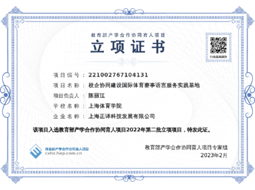 在学校、学院指导下,英语专业教师团队立足高校办学定位,积极服务国家战略,以行业需求为导向,积极建设体育翻译和赛事语言服务人才实践基地。目前,已经与一批语言服务企事业单位联合建立实习实训基地,建设优质的教学实习、实训平台,实现翻译专业人才培养与行业需求、就业市场紧密对接,成功实现了产学研联动。如与协同育人企业签署翻译和语言服务人才实践基地,并在此基础上推动学校与上海市团委、上海体育局、上海久事、上海外服等组织与机构的人才实践、培训基地建设;与校内兄弟院系合作,推动外国语言文学与体育学融合,共同培养国际体育组织、国际体育赛事和国际体育传播等方面的高素质翻译人才和语言服务人才。日前,英语专业在以培养应用实践型的服务国际体育赛事的翻译人才和语言服务人才为目标的前提下,成功与协同育人企业签署“国际体育赛事语言服务实践基地”,并实施教育部产学育人“交叉、融合、创新的国际体育传播人才培养体系”教改实践。
