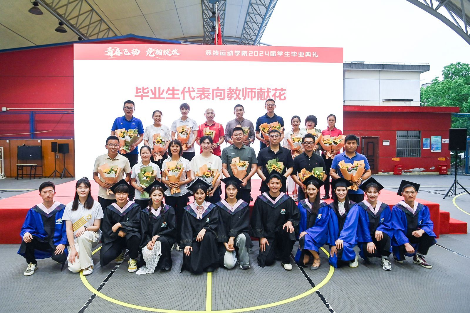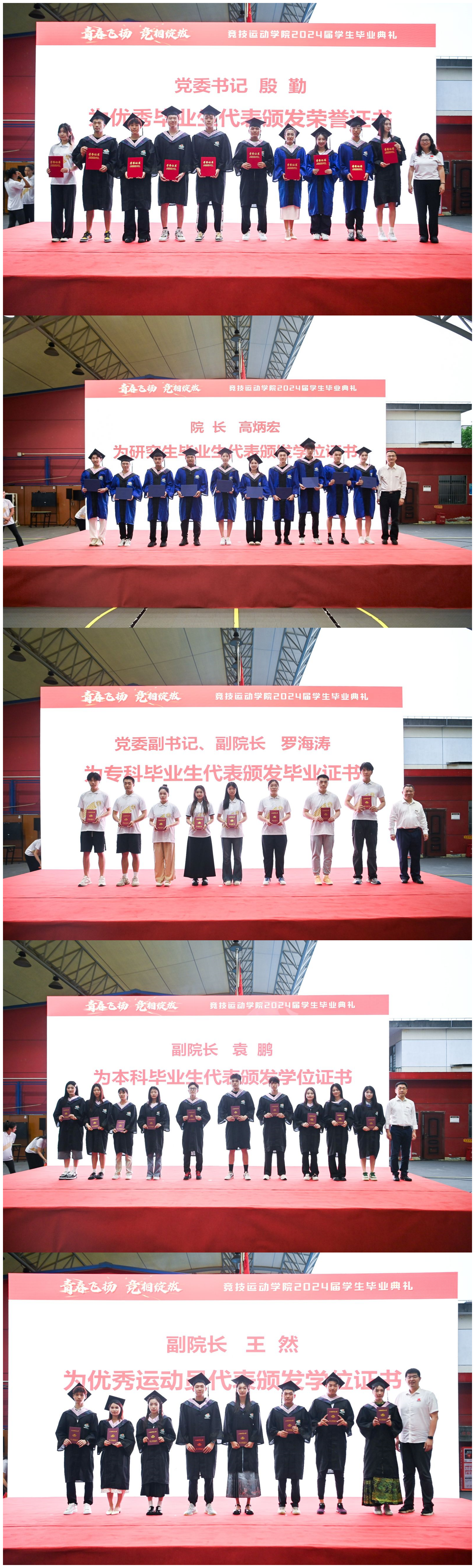竞技运动学院党政班子成员为市、校两级优秀毕业生代表及专、本、研、优秀运动员毕业生代表颁发证书。