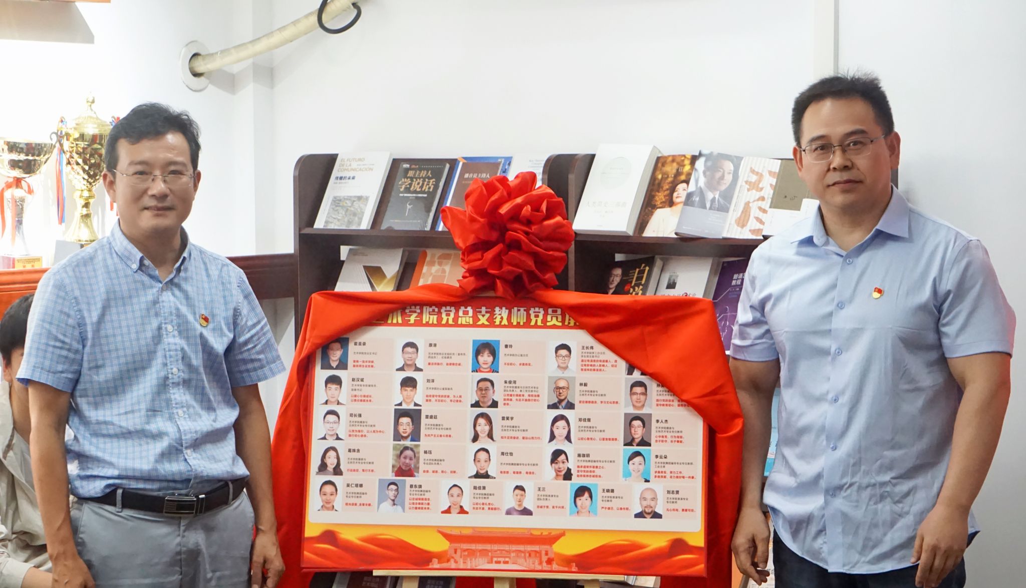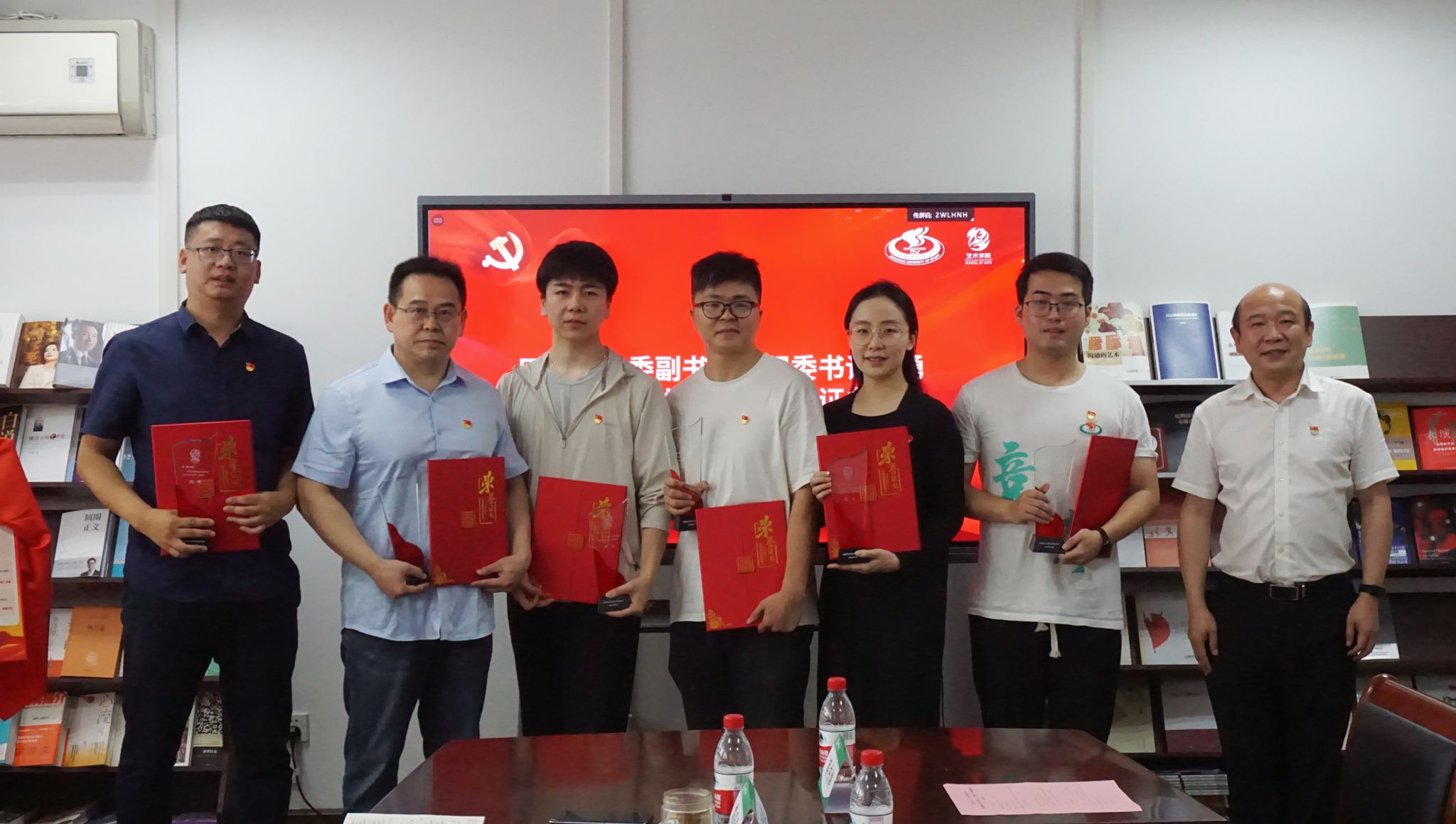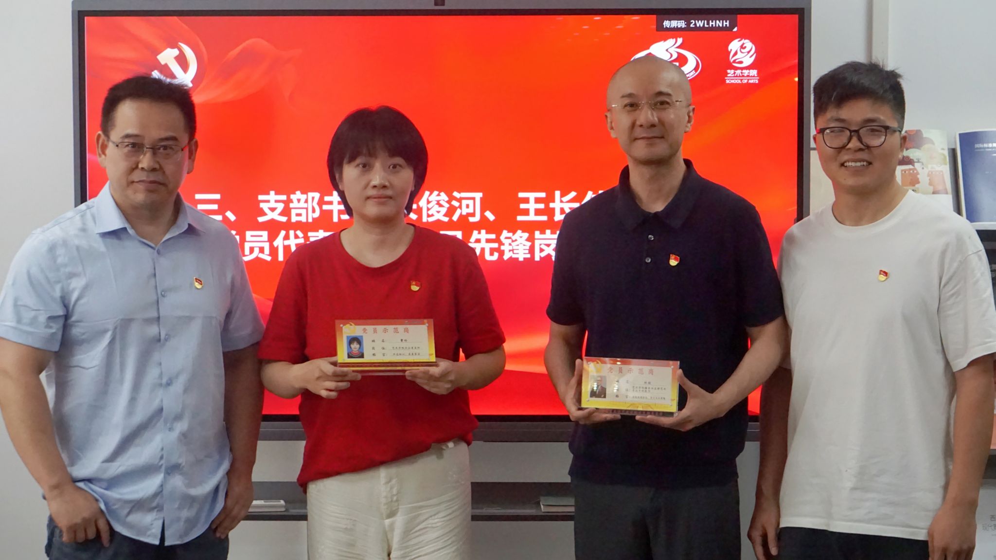 会议还举行了党员承诺公示牌揭牌仪式,由霍圣录与教工党支部书记朱俊河共同为艺术学院党员揭牌,标志着全体党员将坚守初心、担当使命,共同推动学院事业发展。会上还举行了艺术学院民主评议优秀党员与“党员先锋岗”桌牌授予仪式,这些优秀党员不仅是工作中的先锋模范,更是学院党建工作的生动实践者和践行者。他们以实际行动践行党的初心和使命,以优异成绩推动了学院各项工作的开展,展现出了共产党员的优秀品质和政治本色。