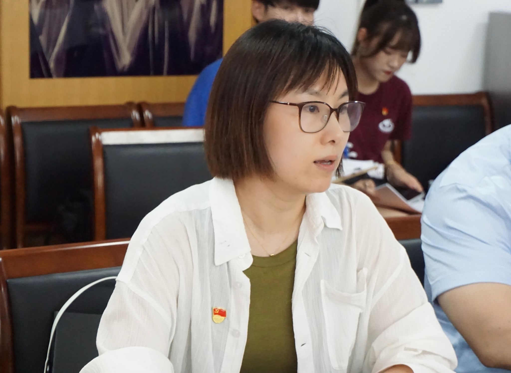 座谈会的交流环节中,双带头人工作室负责人、教工党支部书记朱俊河分享了双带头党支部建设的心得体会,以及教工党支部建设提质增效,更好发挥战斗堡垒作用的设想;学生党支部书记王长伟提出了学生支部党建育人“六度”工作法,塑造“知识到见识、参观到参与、体会到体验”全域体艺思政育人格局,在党建育人工作上克难度、增力度、拓维度、强精度、促进度、提温度;表演团队党员教师以奋楫笃行担使命-以大话节获奖剧目《峨眉》创排为例分享了党建引领学科专业建设的工作,特别强调了学生党员骨干在整个创排过程中所发挥的先锋模范作用,肯定了学院在党员发展、教育等方面的扎实工作和积极探索;舞蹈编导团队党员教师蔡东燐以党纪学习与理想信念为主题回顾了参与学校、学院党纪学习教育的一些所思所想,并结合自身退役军人身份回顾了军旅生涯工作生活中涉及党纪、军纪的案例,谈到了党纪、军纪都是理想信念的外化,要树立远大的共产主义理想信念,才能将纪律规定内化于心,外化于行,春风化雨,潜移默化的表现在日常生活当中。
