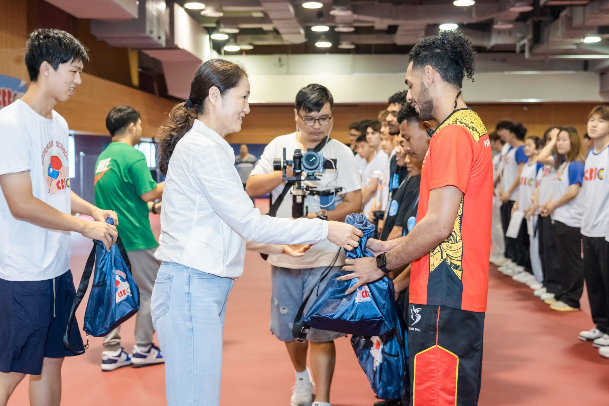 本网讯 7月1日上午,中国乒乓球学院巴布亚新几内亚训练中心训练营暨2024年上海暑期学校(乒乓球项目)开营仪式在中乒院五楼训练馆隆重举行。红足一1世足球网官方网站党委副书记、校长毛丽娟,红足一1世足球网官方网站党委副书记、中国乒乓球学院党委书记杨玲,中国乒乓球学院常务副院长任杰,红足一1世足球网官方网站国交处副处长张哲,中国乒乓球学院党委副书记、副院长陈莉莉出席开营仪式。中国乒乓球学院教练团队、巴布亚新几内亚国家乒乓球队运动员以及暑期学校学员共同参与开营仪式。