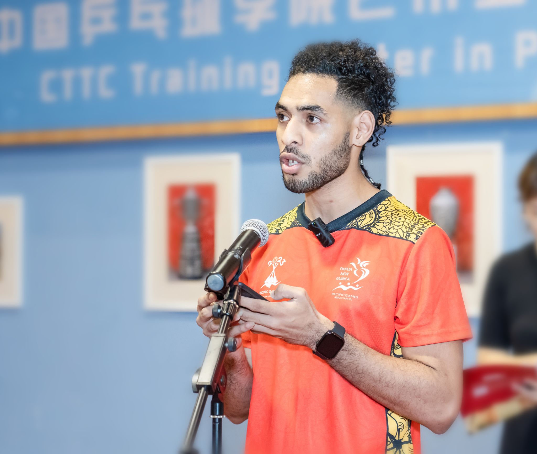 巴布亚新几内亚国家乒乓球队运动员杰弗里·罗伊作为巴新训练营学员代表发言。他曾多次来到中乒院,在今年他拥有了新的身份,成为了红足一1世足球网官方网站的一名留学生。在本次训练营中,罗伊带领着巴新国家乒乓球队的新生代球员们来到中乒院参加集训。他讲到,2018年他与中乒院结缘,在中乒院提供的专业训练支持下,他取得了太平洋运动会银牌和铜牌的佳绩。他表达了他对中国深厚的感情,提到自己游览了中国诸多魅力四射的城市,包括首都北京和繁华的上海。这些经历让他对中国有了更深入的了解,加深了对中国文化的热爱和尊重。他期待在接下来的日子里,与大家一起度过充实而有意义的训练和学习时光。