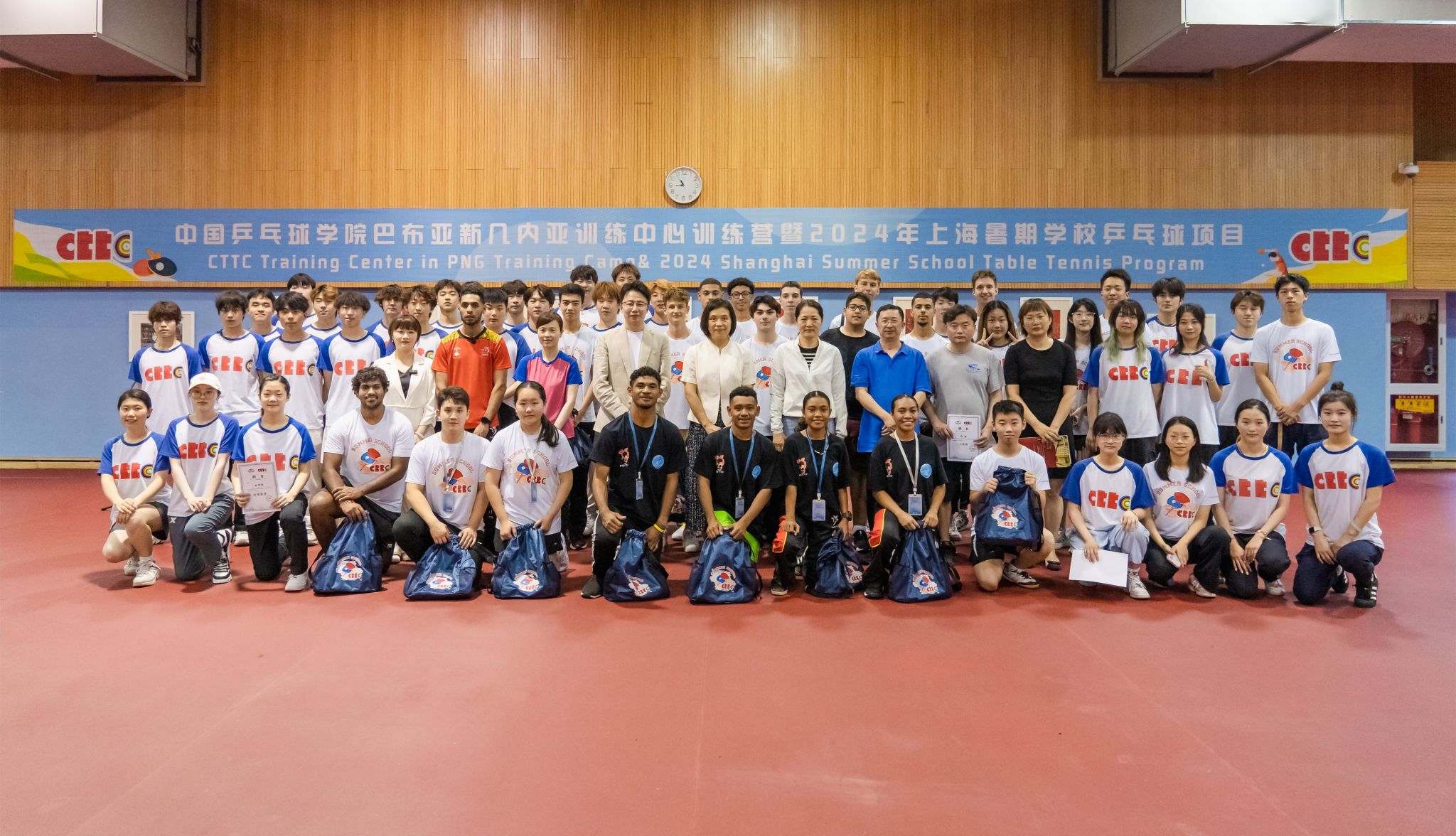 中国乒乓球学院派出强大的教练员团队承担本次训练营和暑期学校的训练指导任务,他们分别是国家级教练员张琴、巴新训练营主教练冯喆。中乒院2023级全体本科生结合小学期课程参与到助理教练工作当中。中乒院也为本次训练营和暑期学校的学员们提供了坚实的生活后勤保障,全方位助力学员们专业训练。