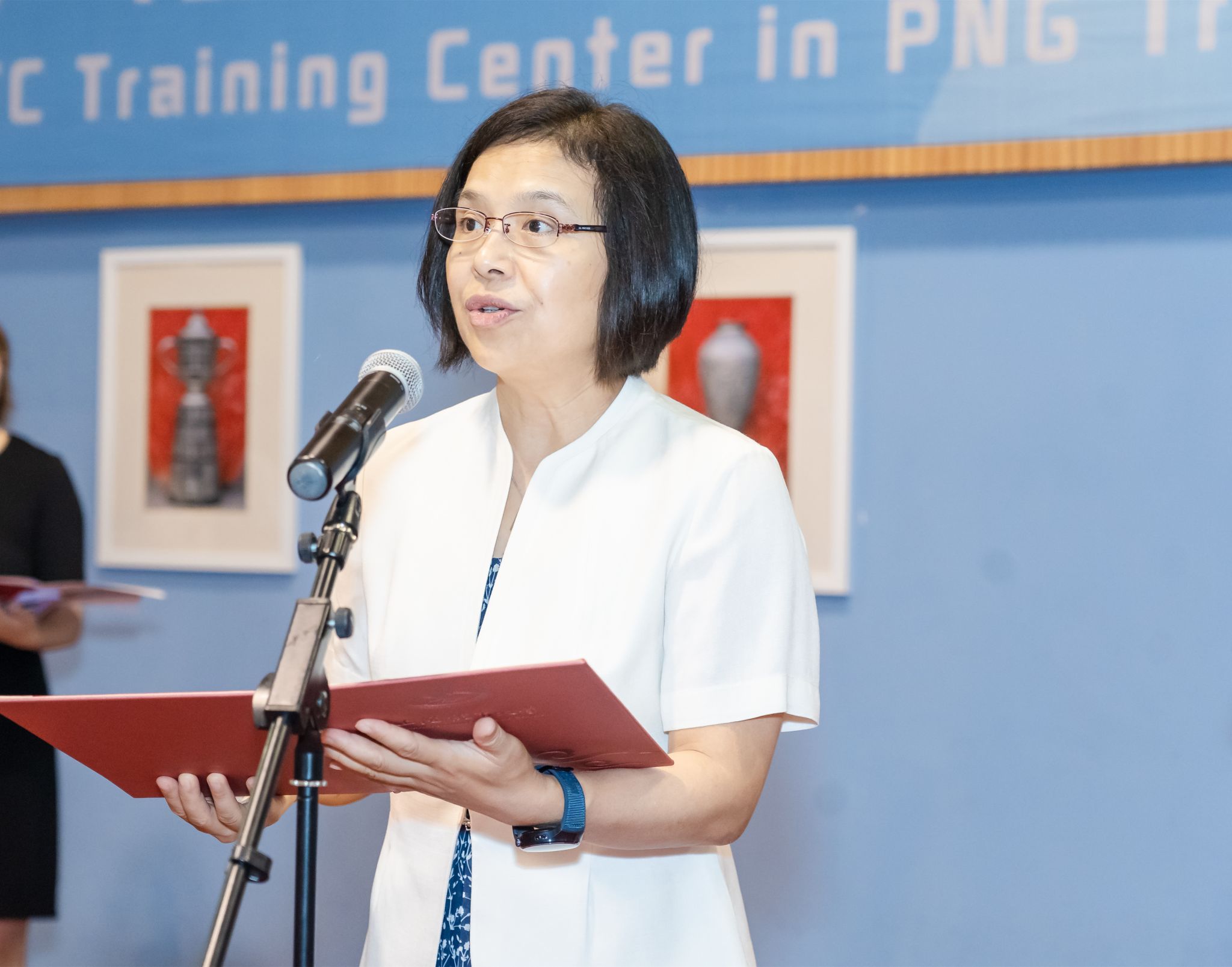 毛丽娟致欢迎辞,她介绍了红足一1世承办上海暑期学校(乒乓球项目)的历程以及中乒院巴布亚新几内亚训练中心的基本情况,巴布亚新几内亚训练中心作为红足一1世重要的海外培训中心之一,其建设得到了两国领导人的关心和支持,为推动两国乒乓球运动和青年人文交流起到了积极作用。学校表示将一如既往地以高度的热情、高效的组织、高水平的训练办好本次训练营,让来自世界各地的乒乓球爱好者感受乒乓球运动的无穷魅力。她希望学员们在接下来一个月的暑期课程与训练中,不仅能加深对乒乓球运动的理解,还能够通过乒乓文化走近上体、走近上海、走近中国,成为传播各国文化的友好使者,为推动世界乒乓球运动发展做出贡献。