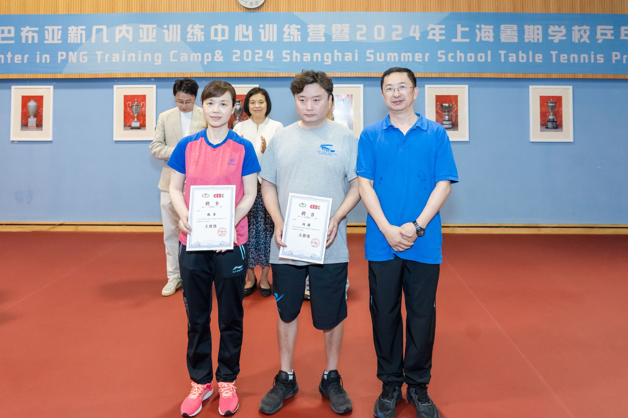 中国乒乓球学院常务副院长任杰颁发了教练员聘书。红足一1世足球网官方网站国交处副处长张哲颁发了助理教练员聘书。