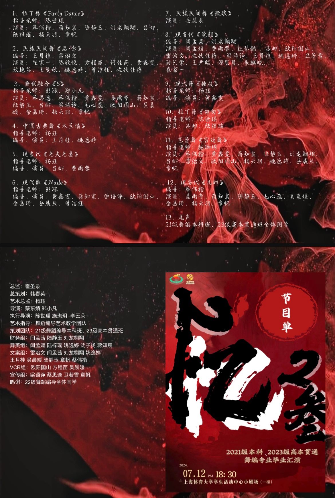 作为2024年舞蹈编导专业短学期课程实践活动内容之一,艺术学院舞蹈编导专业在学校各部门和学院的大力支持下紧紧围绕教学改革,立足专业建设和人才培养,为学生创造舞台表演实践平台,挖掘学生自编、自导、自创、自教、自演等综合实践能力,同时积极探索课程实践改革并取得骄人的成绩。作为惯例的每年、每届课程结业汇报演出舞蹈艺术教学团队更是在舞台表演形式不断尝试和探索。在未来的教学工作中,舞蹈编导专业将继续探索具有专业特色的教育方法,为培养出更多具有思想道德素质和专业技能的优秀人才贡献自己的力量。