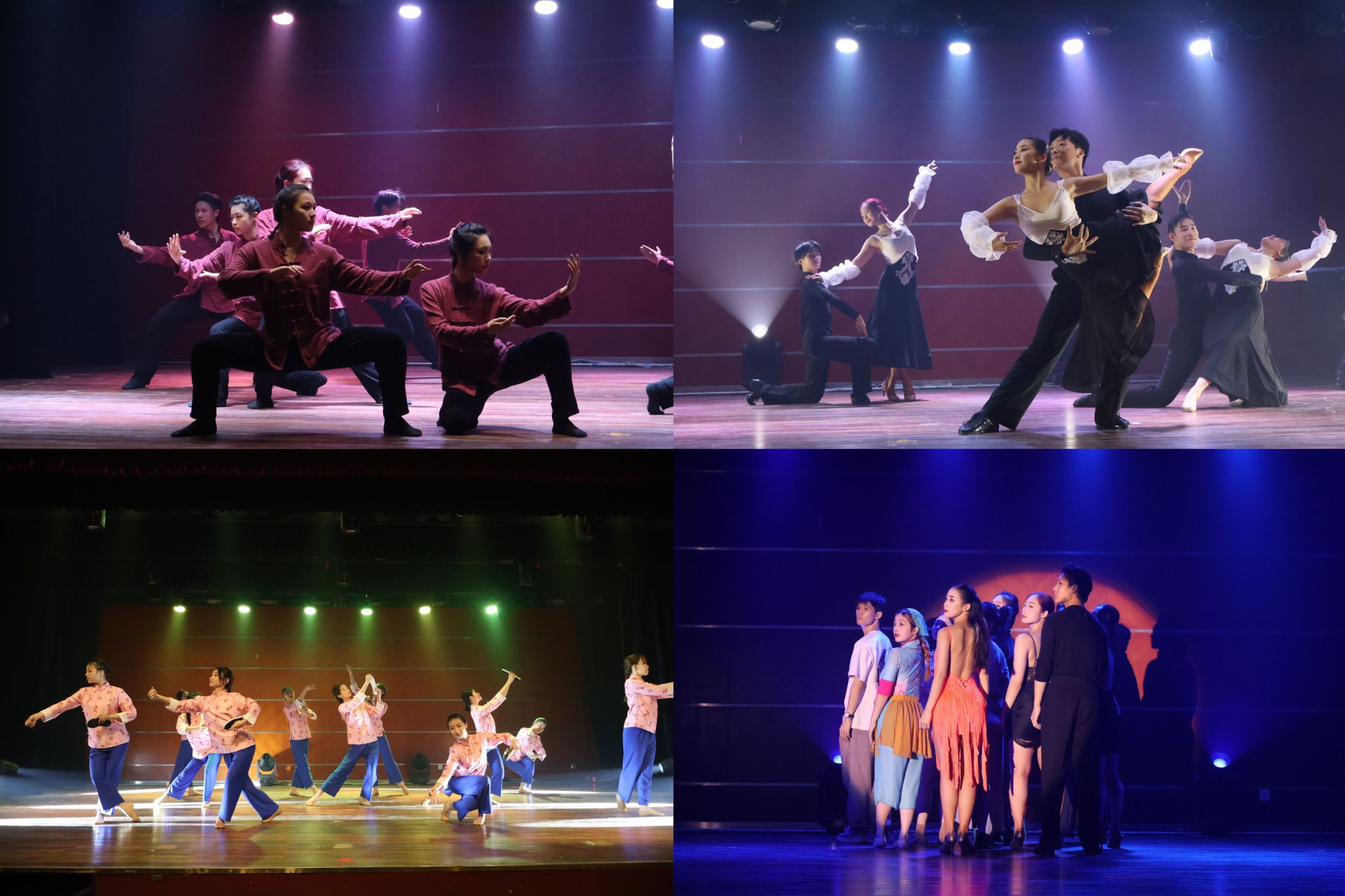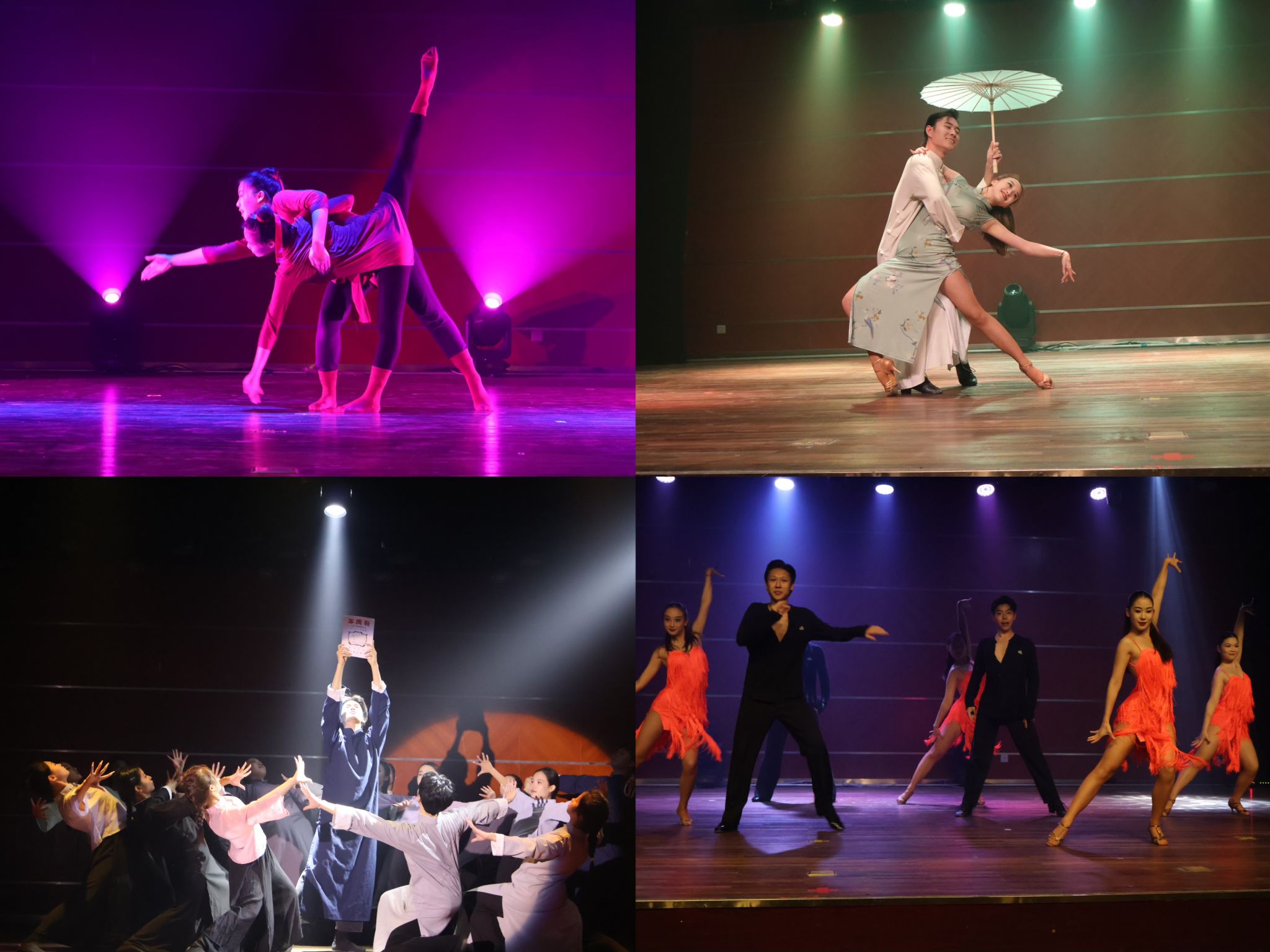拉丁舞《Party Dance》展现了同学们的热情与活力,民族民间舞《思·念》表达了对远方亲人的思念与祝福,舞武融合《5》展示了武林梦想和腰马合一的技巧,中国古典舞《木兰情》展现花木兰为国担当的精神,国标舞《老夫老妻》表达了岁月静好、相濡以沫的情感,现代舞《Nude》探索了自我回归、去伪存真的理念,民族民间舞蹈《微娘》讲述了孤单落寞、守候失望的心境,现代舞《觉醒》表达同学们对时代变革的深刻思考和对于未来的坚定信念,拉丁舞《匆匆》和现代舞《独枝》则表达了温柔期待和独立生长的主题,最后,芭蕾舞《宫廷舞》和现当代舞《儿时》则展现了同学们的多才多艺和回忆青春的感慨。
