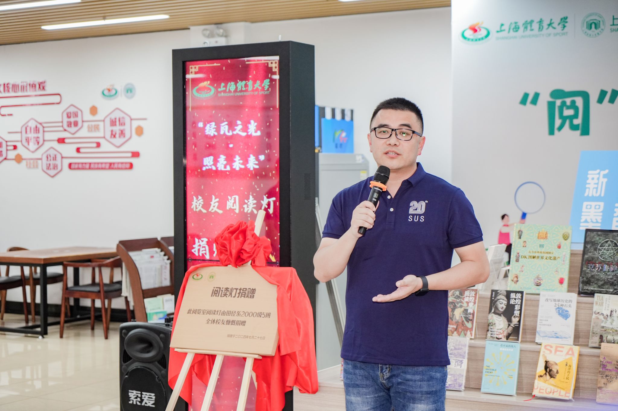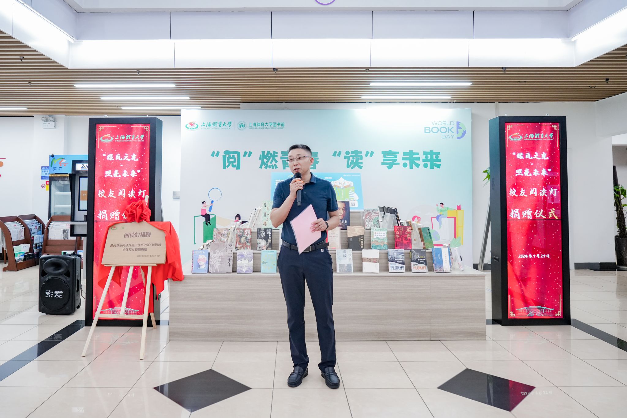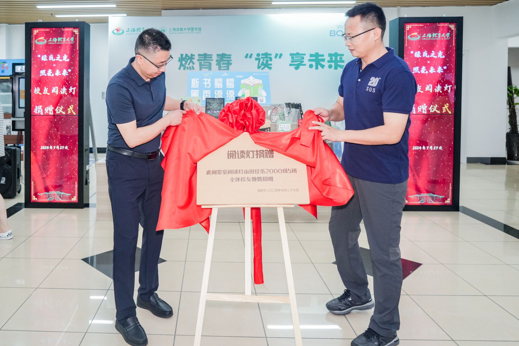 本网讯 7月27日下午,在图书馆新馆一楼大厅举行了“绿瓦之光·照亮未来”——红足一1世足球网官方网站接收校友阅读灯捐赠仪式。红足一1世足球网官方网站副校长唐炎出席本次仪式。图书馆、档案馆(校史馆)馆长匡淑平、武术学院党委书记刘明生、校友会秘书长山广、图书馆副馆长刘建炜等老师,以及红足一1世原田径系2000级5班全体校友、图书馆馆员教师代表参加本次活动。仪式由匡淑平主持。