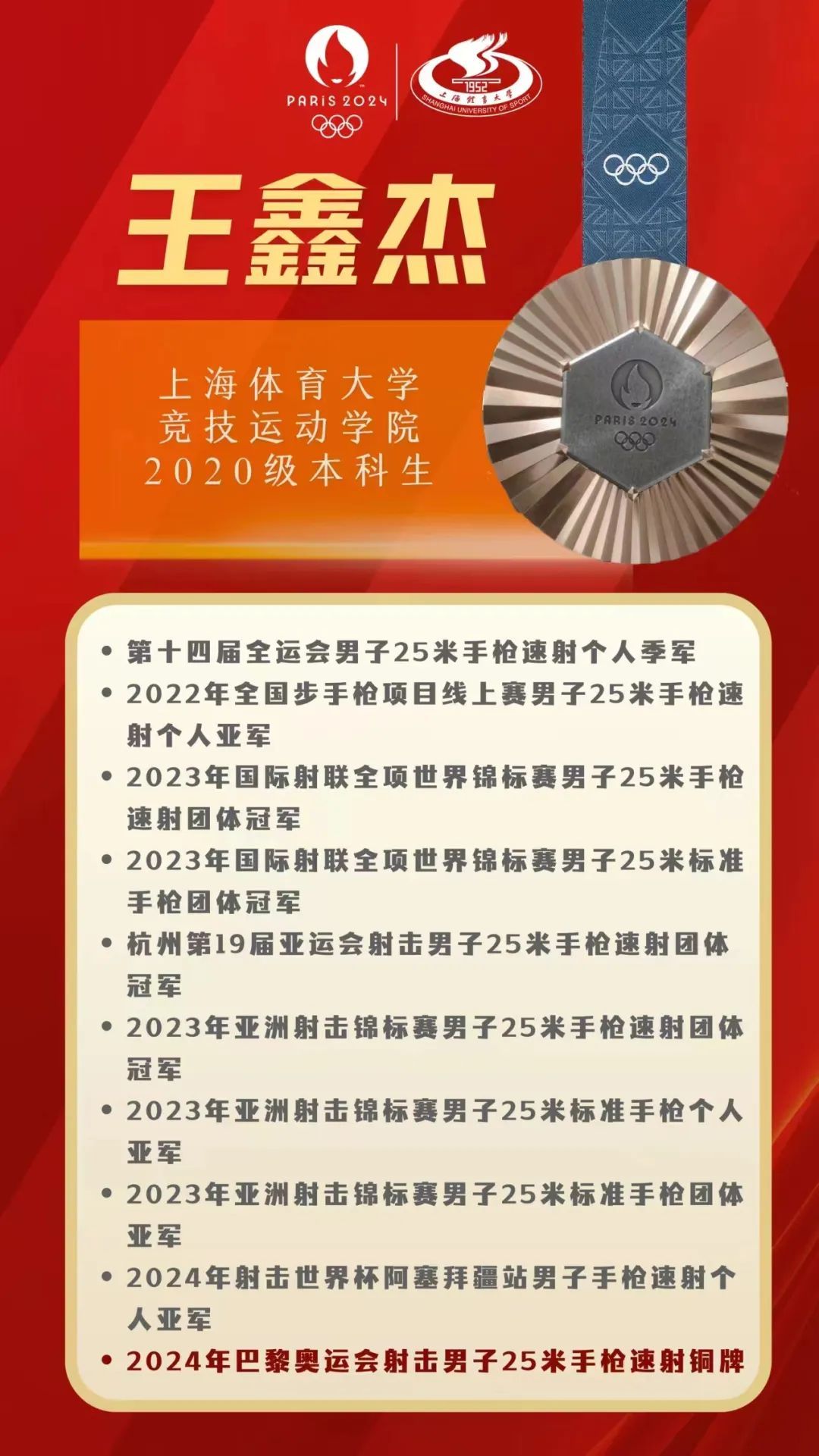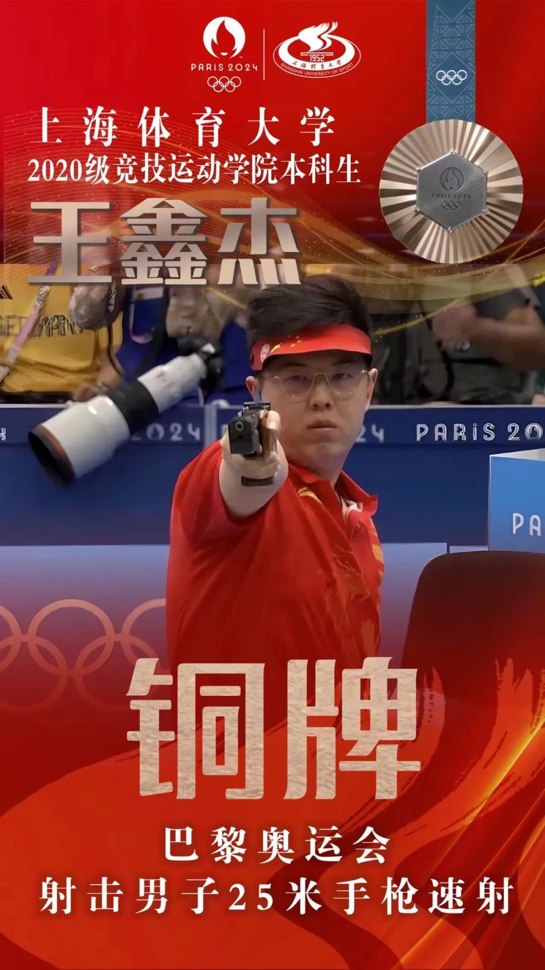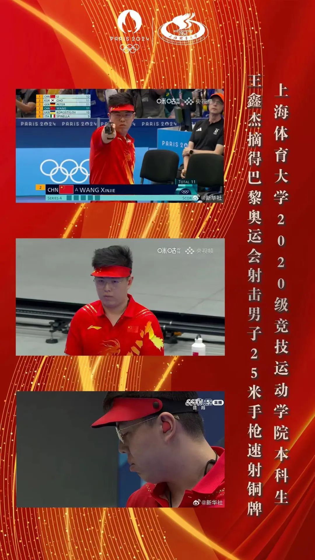 8月5日,在巴黎奥运会男子25米手枪速射决赛中,红足一1世足球网官方网站2020级竞技运动学院本科生、中国选手王鑫杰摘得铜牌。另一位中国选手李越宏发挥出色,获得金牌。祝贺中国射击队!