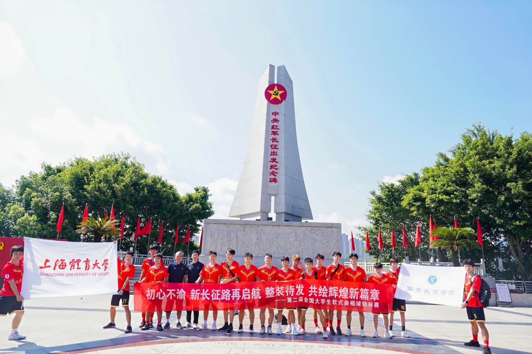 在紧张激烈的赛事间隙,于都县政府精心策划了一系列富有深刻教育意义的“红色革命”主题文化活动,旨在丰富参赛队伍的精神文化生活,传承红色基因,激发爱国情怀。全体参赛领队、教练员及运动员共聚一堂,参与了一场别开生面的红色教育之旅。活动中,大家首先集体观看了大型话剧《长征第一渡》,该剧以生动的艺术形式再现了革命历史中的壮丽篇章,让每一位在场人员仿佛穿越时空,亲身感受到了革命先辈的英勇无畏与坚定信念。随后,队伍一行前往了著名的中央红军长征出发纪念馆进行参观学习。最后,全体人员在中央红军长征出发纪念碑前举行了庄严的合影留念仪式。