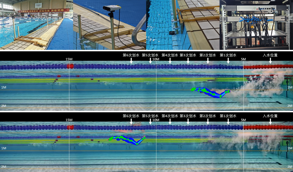 科研团队在国家跳水队,针对“3D+AI”跳水辅助训练系统,应用体育大模型进一步提升算法推理的速度与准确性,有效助力队伍的备战工作。在国家游泳队打造了水上水下全程50米3D智能采集与AI量化分析系统,多视角智能监测运动员游泳的全过程,包括:出发、途中游、转身、冲刺等技术细节。在国家体操队,针对吊环项目研发了AI动作拆解与3D定量分析系统,能够自动检测运动员的吊环动作并实时跟踪定位人体的3D关键点,现场分析3D数据指标:肘关节角度、肩关节角度、髋关节角度、膝关节角度、手倒立夹角、静止时间等。