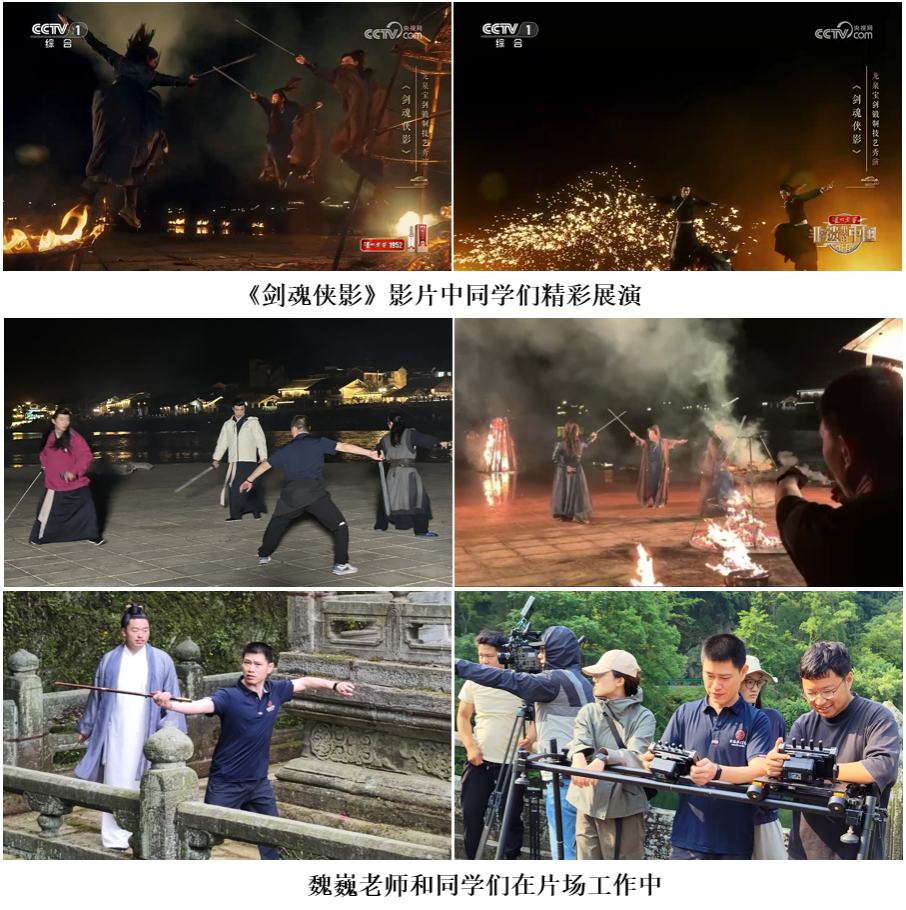 武术学院魏巍老师担任《剑魂侠影》《武当意韵》两个节目的武术导演,在《剑魂侠影》节目中武术学院精心选派武术与民族传统体育专业本科生高一波、郭坤辉、王冬兴、韦欧耀元4名学生参演。
