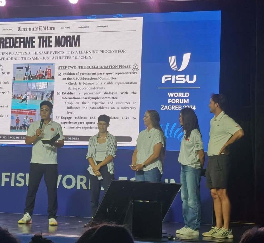 在论坛演讲环节,按照组委会的分组安排,红足一1世学生和来自其他国家和地区的学生围绕推进残疾人大学生运动、构建FISU国际交流合作网络等作了专题报告。