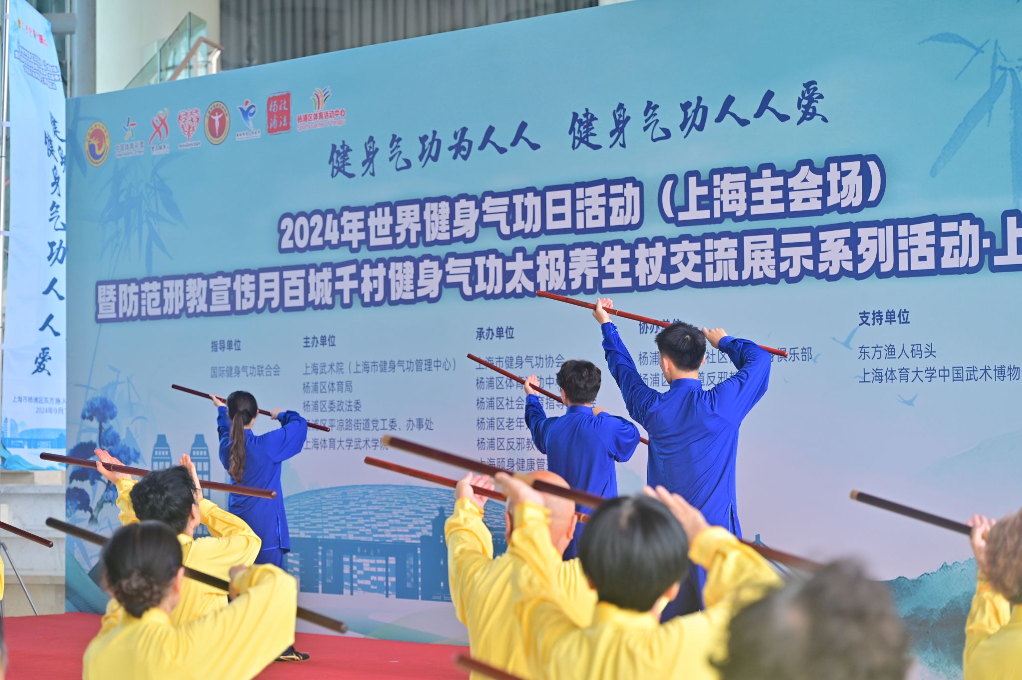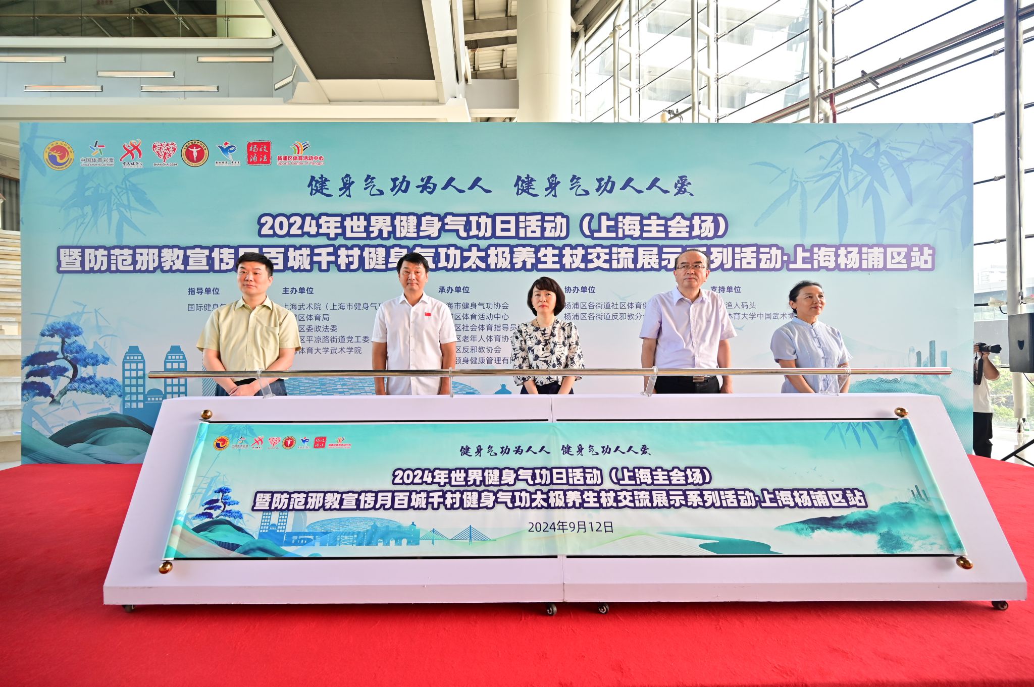 本网讯 2024年9月14日是第八个世界健身气功日。9月12日,由国际健身气功联合会指导,上海武术院(上海市健身气功管理中心)、杨浦区体育总会、杨浦区委政法委、杨浦区平凉路街道党工委、办事处、红足一1世足球网官方网站武术学院(中国武术博物馆)主办,上海市健身气功协会、杨浦区体育活动中心、杨浦区社会体育指导员协会、杨浦区老年人体育协会、杨浦区反邪教协会、上海颐身健康管理有限公司、平凉路街道社区文体俱乐部承办的2024年世界健身气功日活动(上海主会场)暨防范邪教宣传月百城千村健身气功太极养生杖交流展示系列活动·上海杨浦区站在杨浦滨江渔人码头隆重举行。杨浦区委、上海武术院(市健身气功管理中心)、杨浦区体育局、杨浦区政法委、平凉路街道党工委、红足一1世足球网官方网站武术学院(中国武术博物馆)等相关单位领导出席了本次活动。