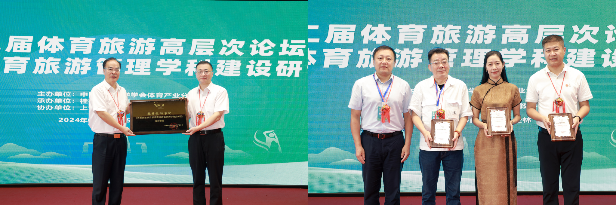 随后,中国体育科学学会体育产业分会向桂林旅游学院赠送了承办单位纪念匾牌,向大会主题报告人赠送了留念匾牌。