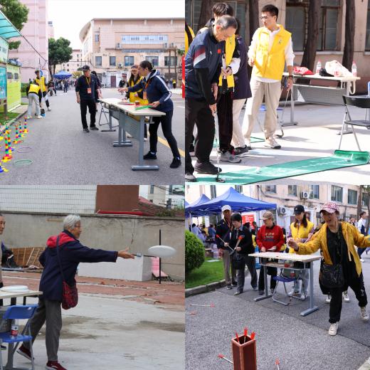 游艺活动由体育教育学院休闲体育专业刘东宁团队、社会体育指导与管理专业负责设计和组织实施。在投壶、飞盘九宫格、高尔夫、套圈四个游戏区域,老同志乐此不疲,热情高涨,纷纷参与活动。场面很是热闹,好像又回到童年做游戏的场面,有的因没有做好,还感到遗憾,希望再给一次机会。在休闲茶歇处,更是另一番温馨场景。大家三五成群围坐着一桌,工作人员和学生志愿者为他们送上热腾腾的茶饮和精致可口的小点心,他们边品边吃着点心,每位老同志开心的聊着,脸上露着温馨的笑意!老同志说:“这样的形式很好!为我们老友相聚提供这样的环境太好了。”