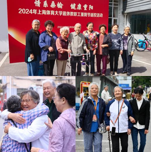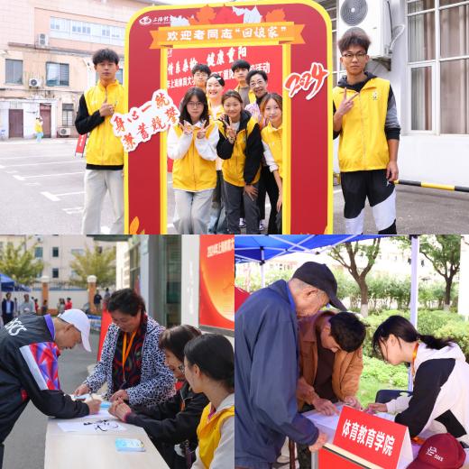 在报到现场,各职能部门、二级学院作为“娘家人”热情接待引导,早早等候老同志的到来。40位身着“黄背心”的学生志愿者分布在不同的岗位,搀扶老人、端茶送水、游戏指导、接待引导,同学们热情阳光的笑容和服务让老同志感受到回到学校的温暖。今年返校活动一改往年的大会庆祝形式,以义诊咨询、游艺活动、休闲茶歇等形式,让老同志度过健康、快乐的“回娘家”的欢聚时光。退休党委(退管会)、老教协、退教协共同举办了庆祝中华人民共和国成立75周年和敬老节主题摄影、书画作品展,学校开放了体育教育博物馆、中国武术博物馆。为老同志们送上最温暖最实在的重阳关怀,显现出欢乐温馨的节日氛围。