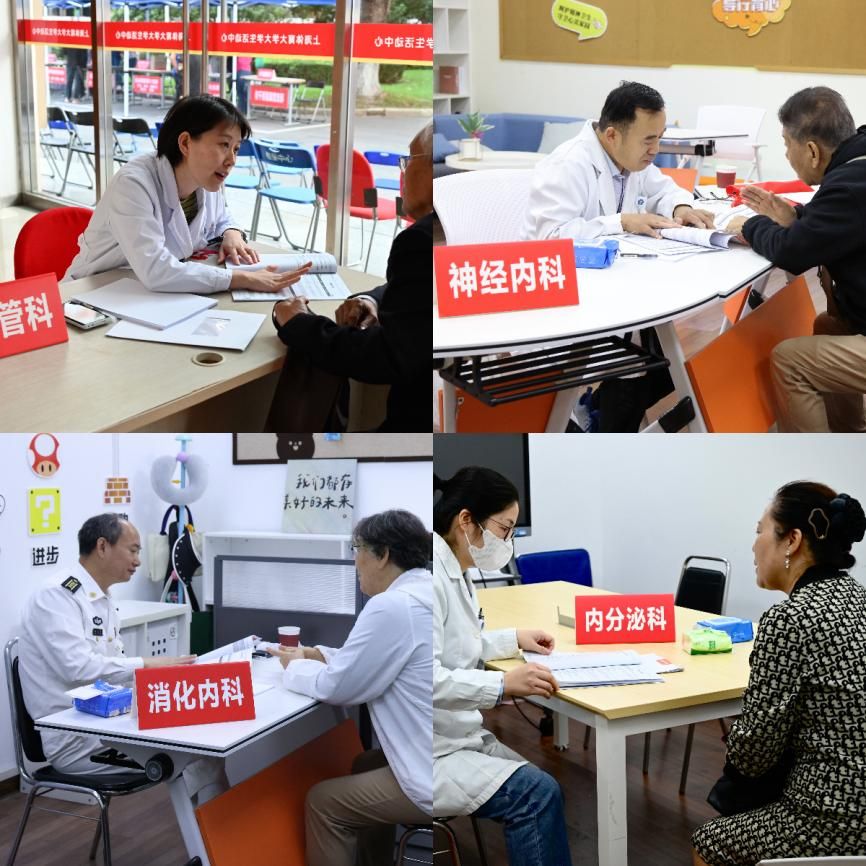 今年重阳节返校活动,得到了海军军医大学第一附属医院健康管理中心的大力支持。由健康管理中心汪志平主任带领的5位专家,为老同志提供了义诊咨询服务。9点开始,义诊咨询区已经排起队伍,在工作人员和志愿者的引导下,大家有序进行咨询。专家们仔细阅读咨询者的报告,耐心解答他们的问题。老同志们纷纷表示,今天的义诊胜似专家门诊,专业、热情、耐心使老同志的心里充满着感动和感激,使今年的重阳节增添了更多的暖意和温情!