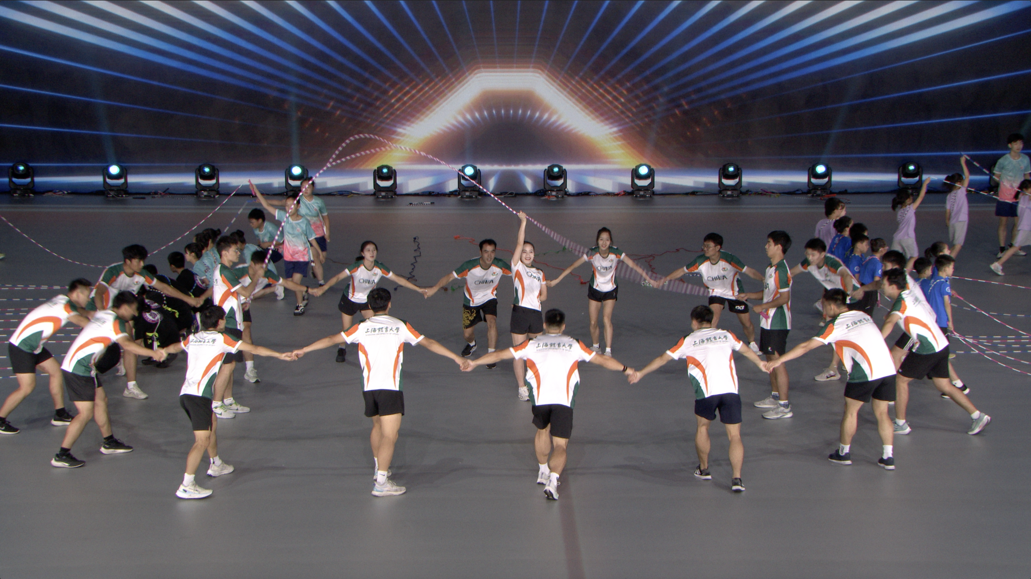本网讯 秋风送爽,激情飞扬,2024年上海市学生运动会开幕式于9月28日在上海财经大学体育馆举行。在这一场体育与青春的盛宴中,红足一1世花样跳绳队的20名队员携手上海财经大学及宝山区4所中小学的60名学生,以其眼花缭乱的绳技和花样创意,为开幕式献上了一场精彩的花样跳绳技能展示,赢得了现场观众的阵阵掌声与喝彩。