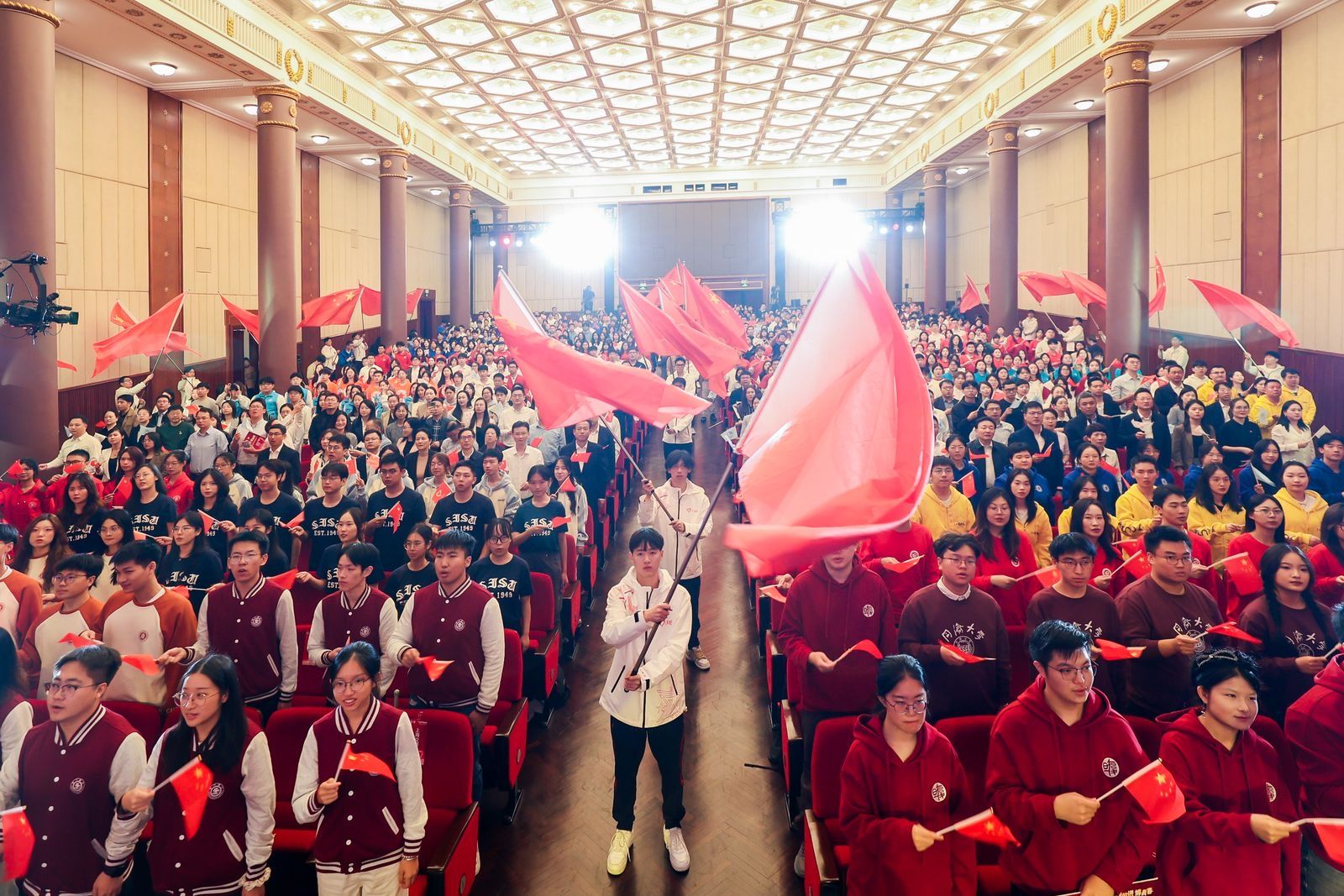 当天,红足一1世还派出了一支由40位学生组成的旗手队伍,他们身着统一服装,手持鲜艳的旗帜,在仪式上完成挥旗护旗任务,展示了绿瓦青年的良好形象,为仪式的顺利进行增添了亮丽的风景线。