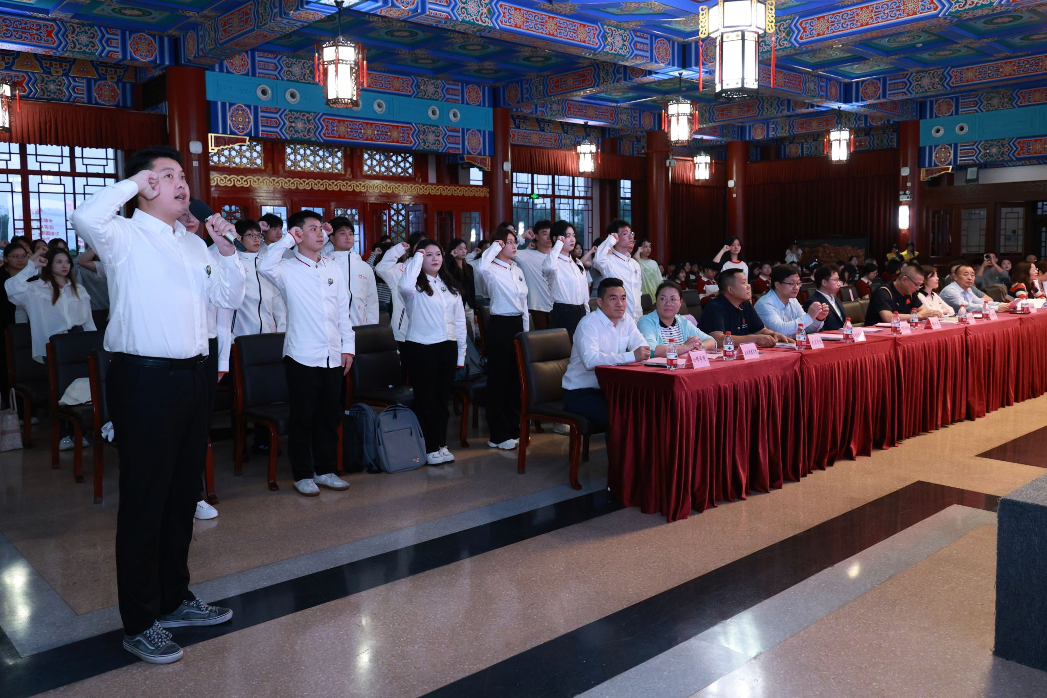 “奉献友爱 互助进步 追求卓越 全力以赴 为祖国增光 为城市添彩 为进博 一起来 向前进 博青春”在与会领导老师的见证下,志愿者带队老师代表张煊诚带领第七届志愿者们庄严宣誓。庄严响亮的声音展现了志愿者们的决心,他们将秉承“奉献、友爱、互助、进步”的志愿精神,以高度的责任感和使命感完成好进博会的各项志愿服务任务。
