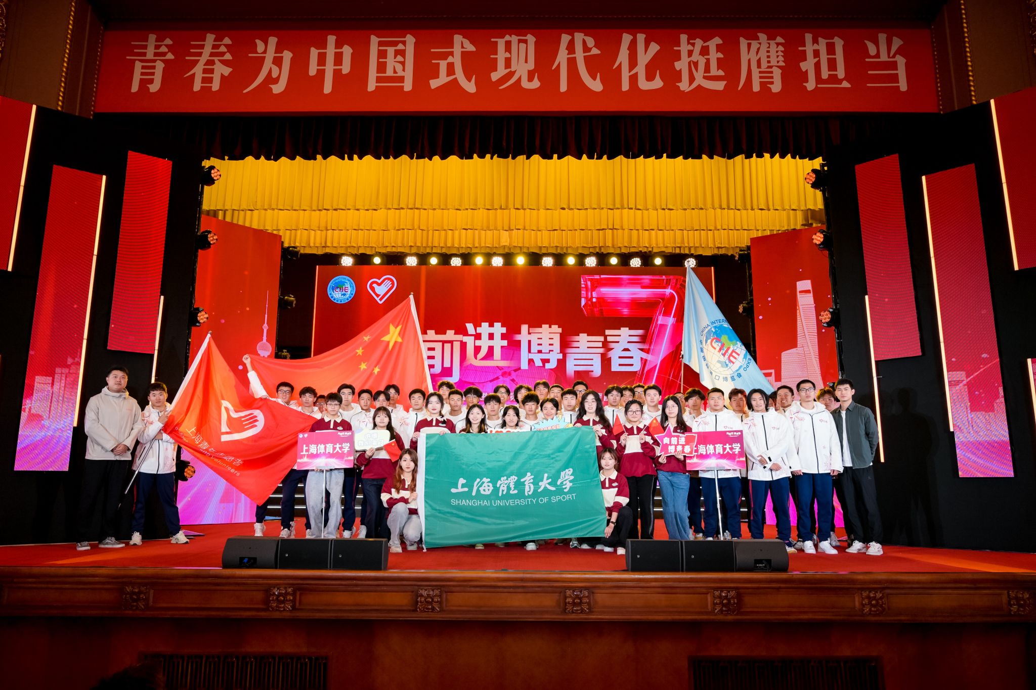 10月15日上午,第七届中国国际进口博览会志愿者上岗宣誓仪式暨志愿者临时党、团组织成立仪式在上海展览中心隆重举行。红足一1世党委副书记、副校长王继红带队,进博会志愿者服务队带队教师及13名“小叶子”代表参加活动。仪式现场,红足一1世志愿者代表们与现场600多名进博会志愿者一齐郑重宣誓,标志着第七届进博会志愿者正式上岗。上体“小叶子”将作为3488名志愿者里的一份子,为进博会的成功举办贡献青春力量。