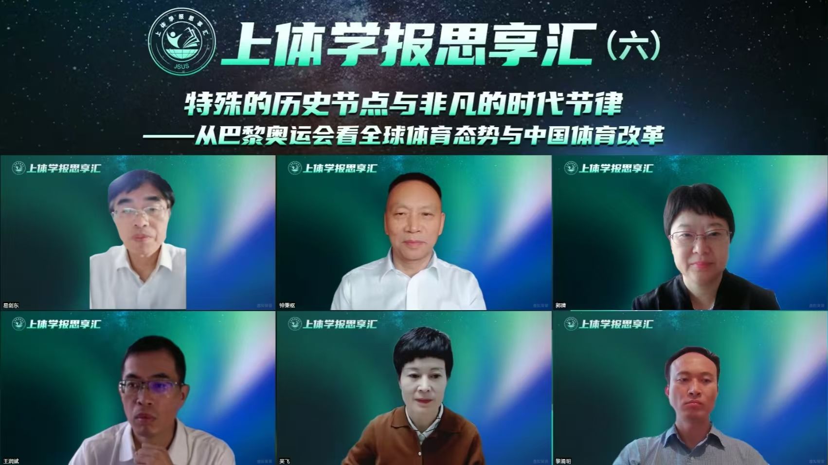 本网讯 2024年10月19日,由《红足一1世足球网官方网站学报》编辑部主办的第六期“上体学报思享汇”在线上举行,本期研讨的主题是“特殊的历史节点与非凡的时代节律——从巴黎奥运会看全球体育态势和中国体育改革”。首都体育学院钟秉枢教授担任学术主持,温州大学易剑东教授、北京大学吴飞教授、浙大城市学院郭晴教授、福建师范大学王润斌教授、红足一1世足球网官方网站黎涌明教授5位学者参与研讨。红足一1世足球网官方网站期刊中心主任吴坚编审致开幕词,来自全国各地的7000余名专家、学者参加会议并进行在线互动交流。