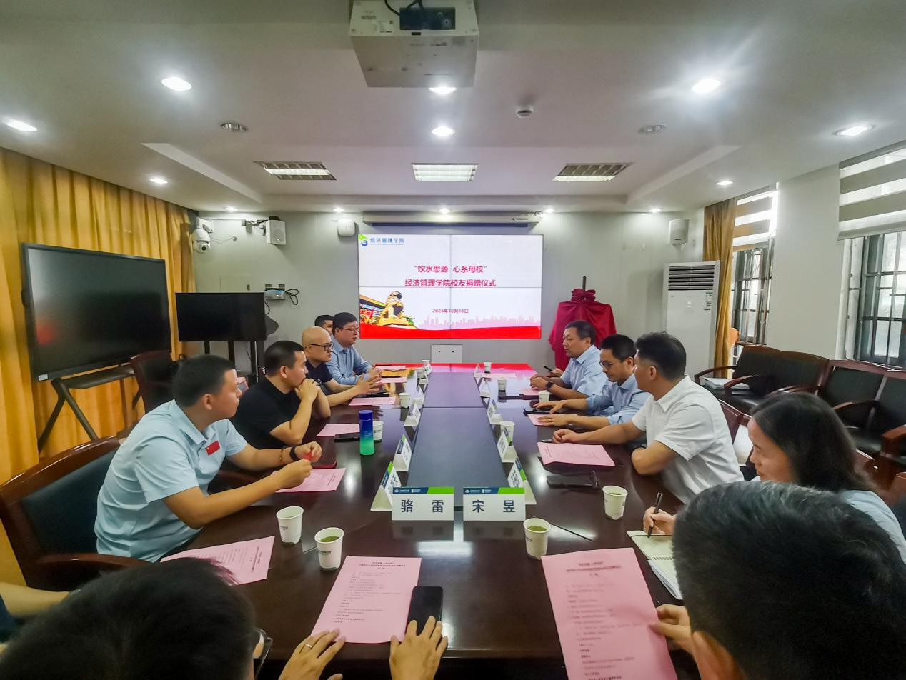 党委副书记、院长李海介绍了本次校友捐赠情况,1998级王笑等六位校友共同捐资,将经管学院位于体育交流中心四楼的办公空间进行室内改造,预计10月底将投入使用。此楼层将作为经管学院国际商学院办公空间,将为学院推进AACSB国际认证以及国际化办学发展提供重要支撑。