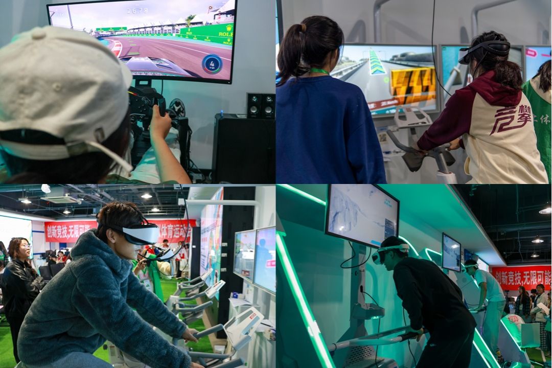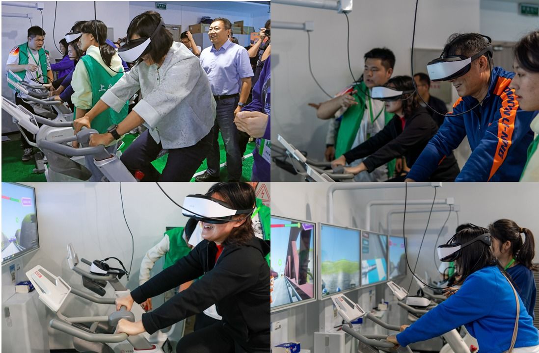 本次运动会设置了虚拟自行车、虚拟滑雪和虚拟赛车三个项目,充分融合了前沿的虚拟现实技术,突破了传统体育赛事的时空限制,使比赛更为便捷、普及,同时也让更多人能够参与其中。