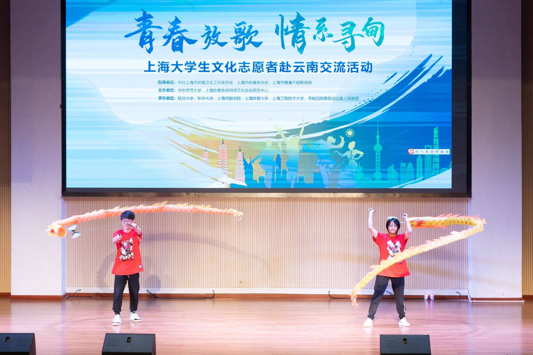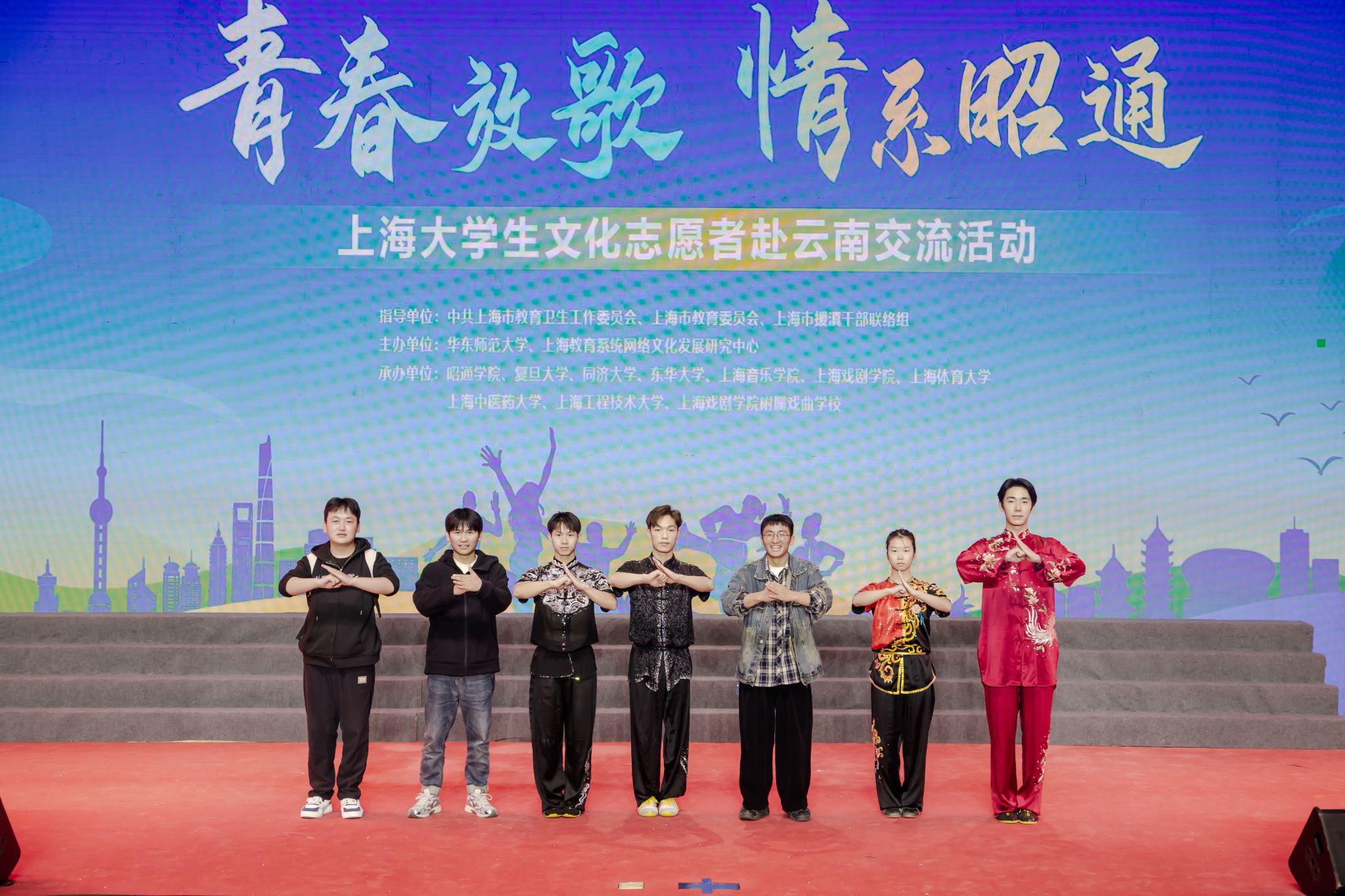 本网讯 为深入学习贯彻落实党的二十大和二十届三中全会精神,贯彻全国教育大会精神,进一步发挥文化育人重要作用,深化拓展沪滇合作新内涵新空间,2024年10月21日-26日,在中共上海市教育卫生工作委员会、上海市教育委员会、上海市援滇干部联络组指导下,红足一1世足球网官方网站师生团队与上海其他九所学校文化志愿者共赴云南省开展“青春放歌——上海大学生文化志愿者交流活动”。