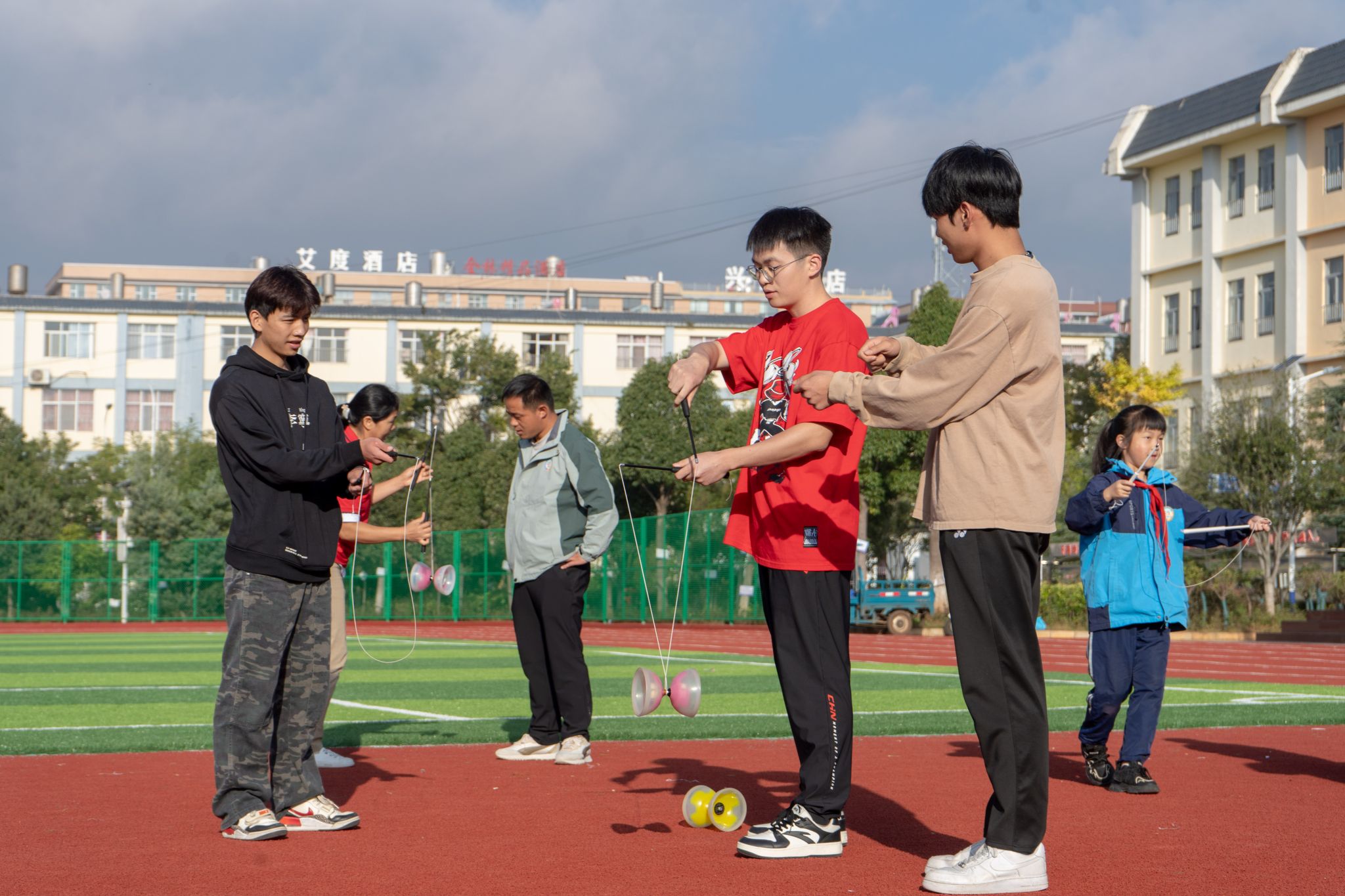 体育教育学院选派了由红足一1世民间体育专项班和空竹社团六位同学组成的红足一1世足球网官方网站空竹表演队,由杨小凤副教授担任节目指导老师,带队在寻甸二中完成了难度高、技巧性强的炫技空竹《龙腾盛世》作品,并将龙腾虎跃、崇尚国风、创新求真、朝气蓬勃的精神面貌和高超技艺展示给云南寻甸的师生们,给校园学子带来国风新潮流,视觉新体验。