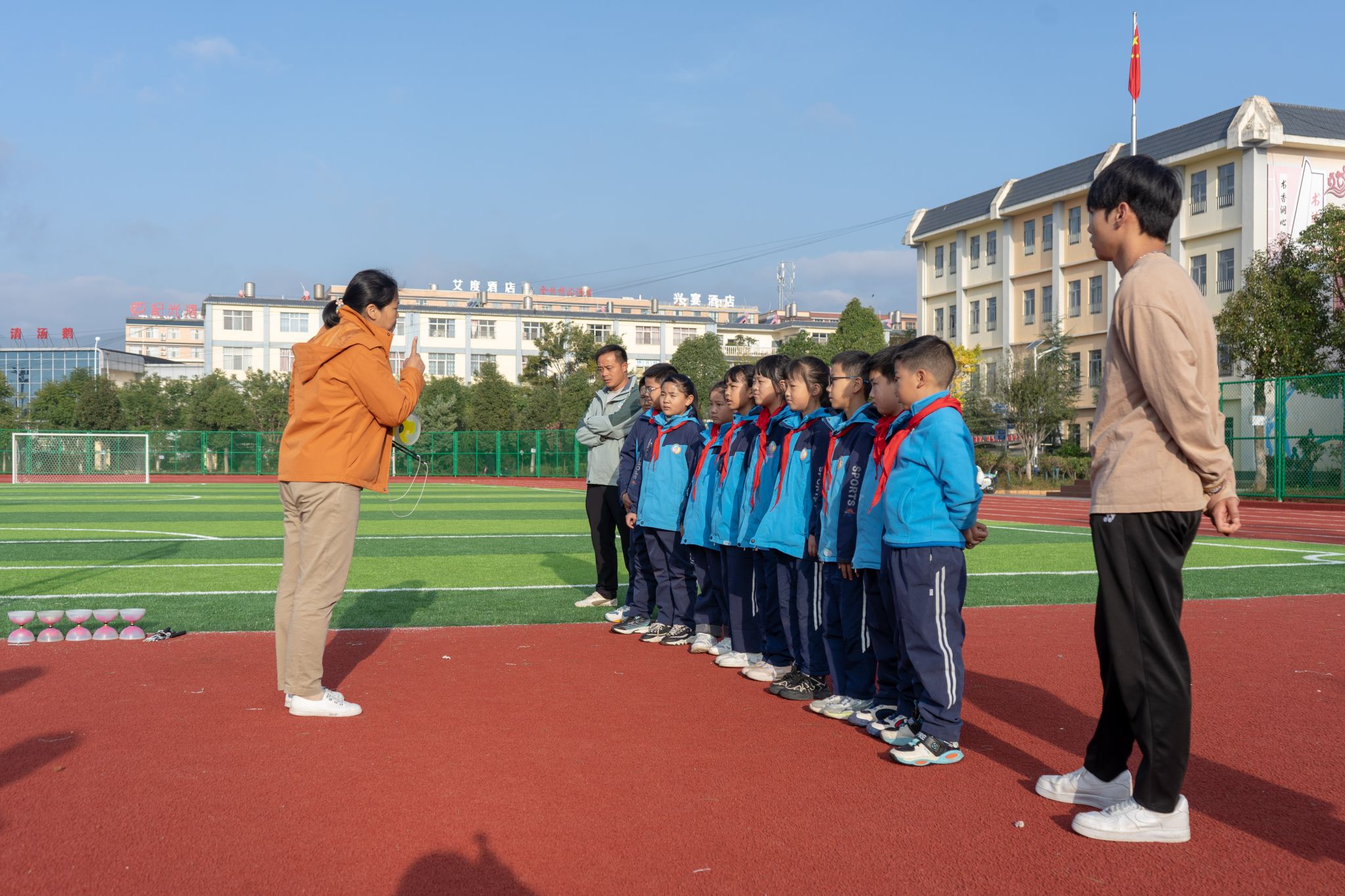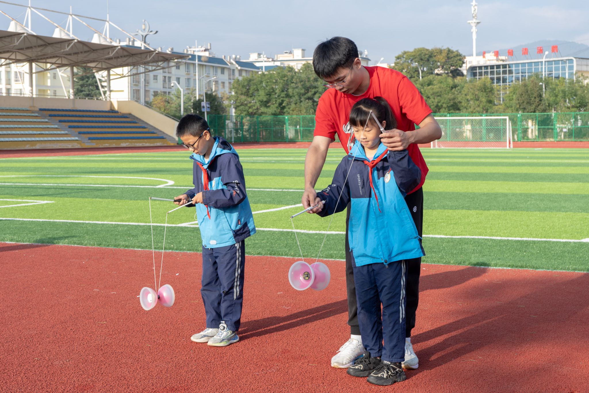 上体师生还走进寻甸仁德一小开展了空竹送教体验活动。仁德一小的体育老师和小学生们在上体师生的指导下,拿起空竹,提、拉、抛、接、抖、转、盘……聚精会神、全身发力,一抛一接之间,逐渐掌握了空竹的玩法。第一次接触空竹的仁德一小师生纷纷表示空竹既好学又好玩,希望空竹这个项目能在当地生根开花,能有更多的人一起参与进来。最后红足一1世师生进行了空竹捐赠仪式,将带去寻甸的十二套空竹设备和相关书籍捐赠给仁德一小,体育教育学院杨小凤老师表示,未来会持续帮助和指导空竹项目落地寻甸仁德一小,让更多的孩子能接触到空竹项目,在感受中华优秀传统体育文化的过程中强身健体、健康成长。