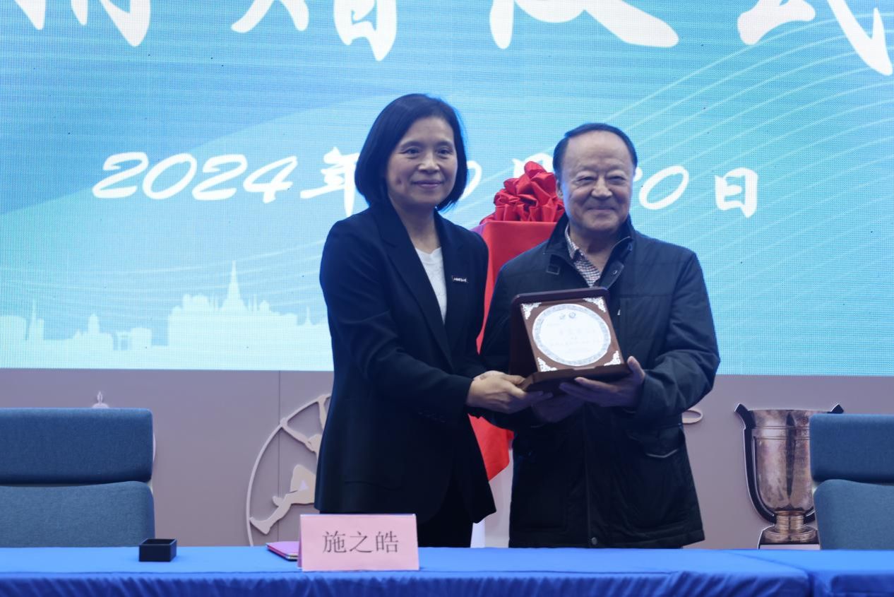 捐赠仪式上,毛丽娟向李富荣颁发捐赠纪念牌。