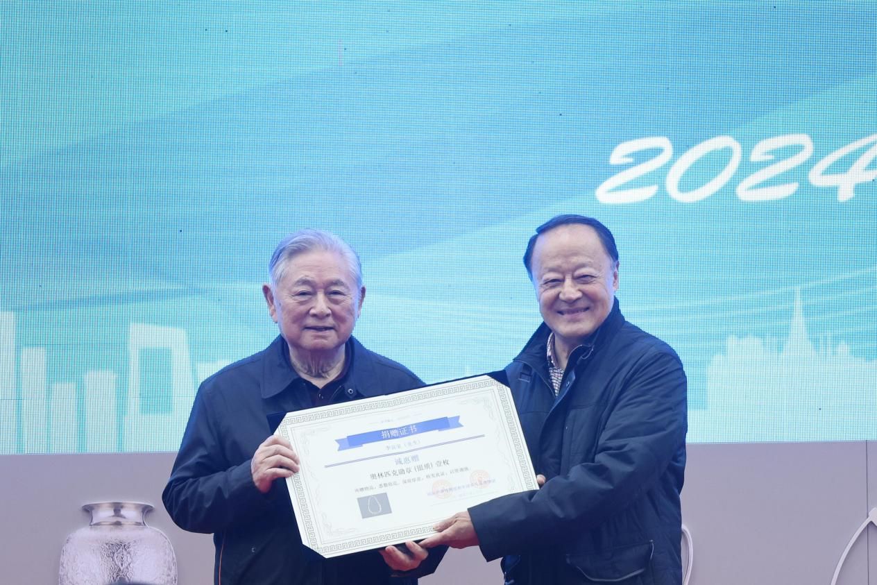徐寅生向李富荣颁发捐赠证书。徐寅生在发言中提到,李富荣同志所获得的奥林匹克勋章(银质)是中国体育界的骄傲。“李富荣将自己最美好的青春都献给了国家体育事业,他在运动生涯中有着勇往直前的拼搏精神,这种精神成为了中国体育界的宝贵财富。”在他看来,乒博馆承载着记录乒乓球历史、弘扬乒乓球文化、传承乒乓精神的重要使命,此次李富荣同志的捐赠不仅为乒博馆的藏品体系增添了新的亮点,更为体育文化的传承发展注入了不竭的动力。