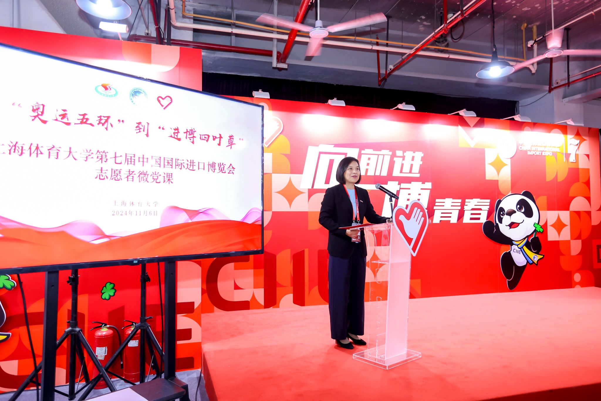 在活动中,毛丽娟校长指出,第七届中国国际进口博览会是在党的二十届三中全会成功召开后举办的一项重大经济外交活动,对于促进中国高水平对外开放和构建新发展格局具有深远的意义。同学们放弃休息时间、积极投身进博会志愿服务工作,正在用自己的实际行动深入践行“全过程人民民主与人民城市理念紧密结合”这一要求,她也鼓励同学们要自觉践行人民城市理念和“进博精神”,也要弘扬“奥林匹克精神”,在进博会上擦亮上体学子“竞攀精神”的青春底色。