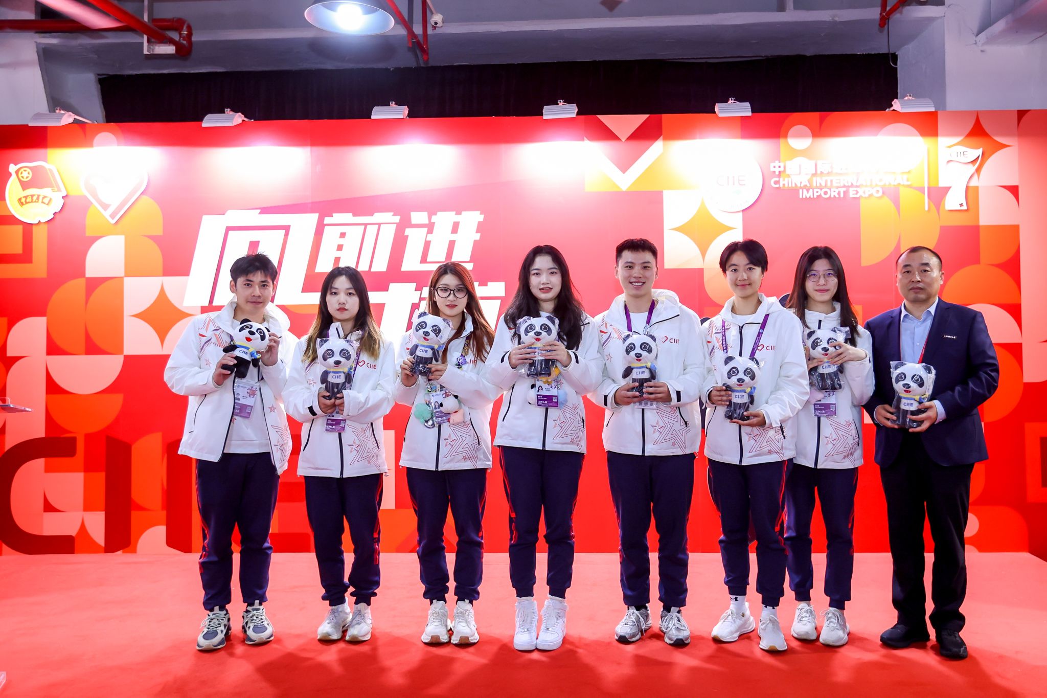 本网讯 11月5日至10日,第七届中国国际进口博览会在上海国家会展中心盛大举行。此次进博会不仅吸引了全球的目光,也成为了红足一1世志愿者们展现青春风采和服务精神的舞台。11月6日,红足一1世足球网官方网站党委副书记、校长毛丽娟,党委副书记、副校长王继红来到国家会展中心,慰问红足一1世进博会志愿者并参与了从“奥运五环”到“进博四叶草”微党课活动。党校办主任徐畅,学(研)工部、武装部部长王丽娜,团委书记、学(研)工部副部长刘佳瑜,竞技运动学院党委副书记、副院长庄娜等陪同。