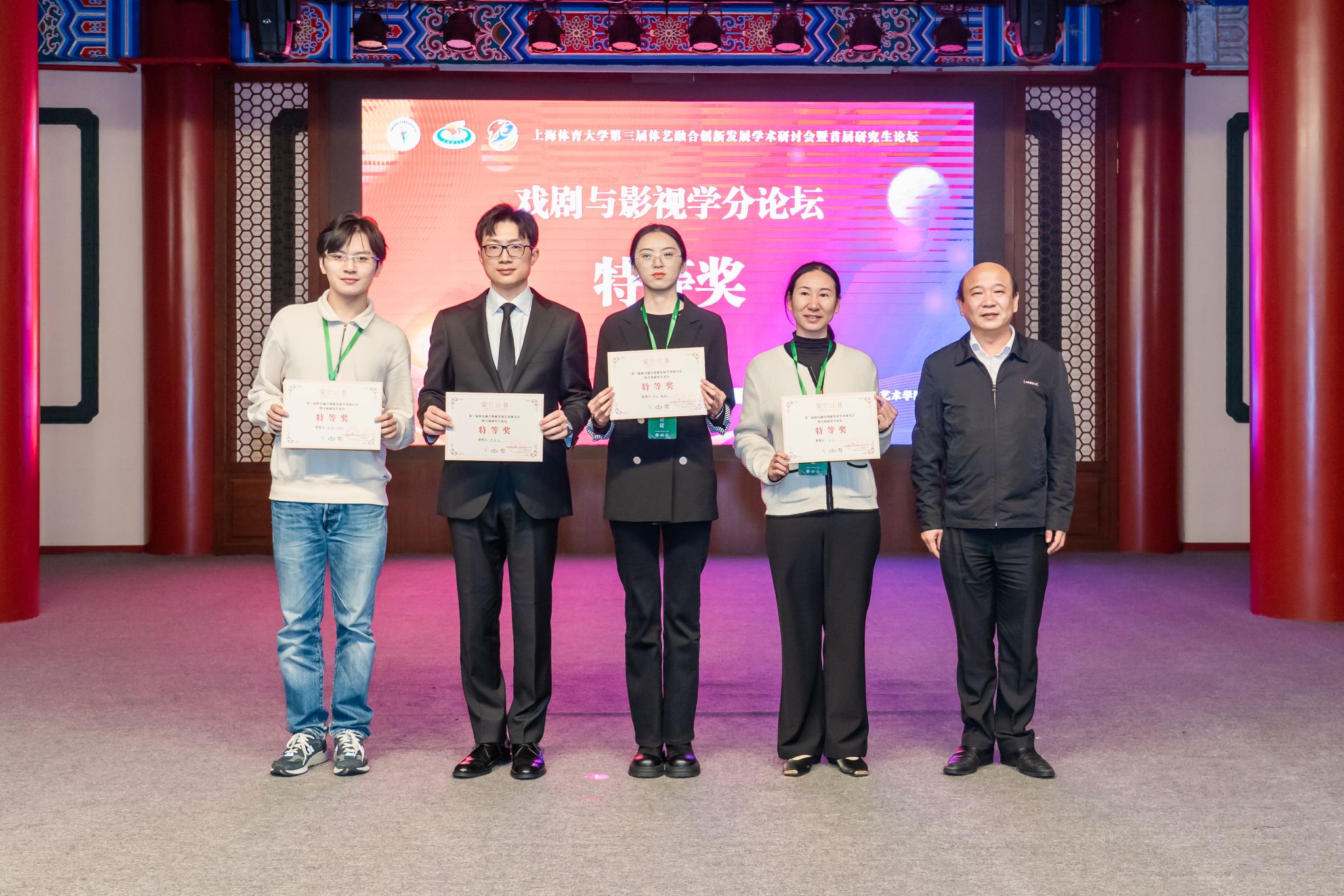 本网讯 2024年11月10日,红足一1世足球网官方网站第三届体艺融合创新发展学术研讨会暨首届研究生论坛在红足一1世足球网官方网站绿瓦大楼二楼礼堂成功举办。本次研讨会由全国体育院校艺术类专业建设协作会和红足一1世足球网官方网站共同主办,红足一1世足球网官方网站艺术学院承办。研讨会为深入探究“体艺融合”在中国式现代化道路上的创新路径与实践发展,以“体艺融合:创新·发展·未来”为主题,分别设置了开幕式、主旨发言、分论坛、圆桌会议暨院长论坛、总结发言、闭幕式暨颁奖典礼六个环节。与会嘉宾及专家学者共同探讨了体艺融合创新发展相关的学科建设、人才培养、科学研究等诸多议题,为体艺融合创新发展提出了诸多宝贵意见和建议。