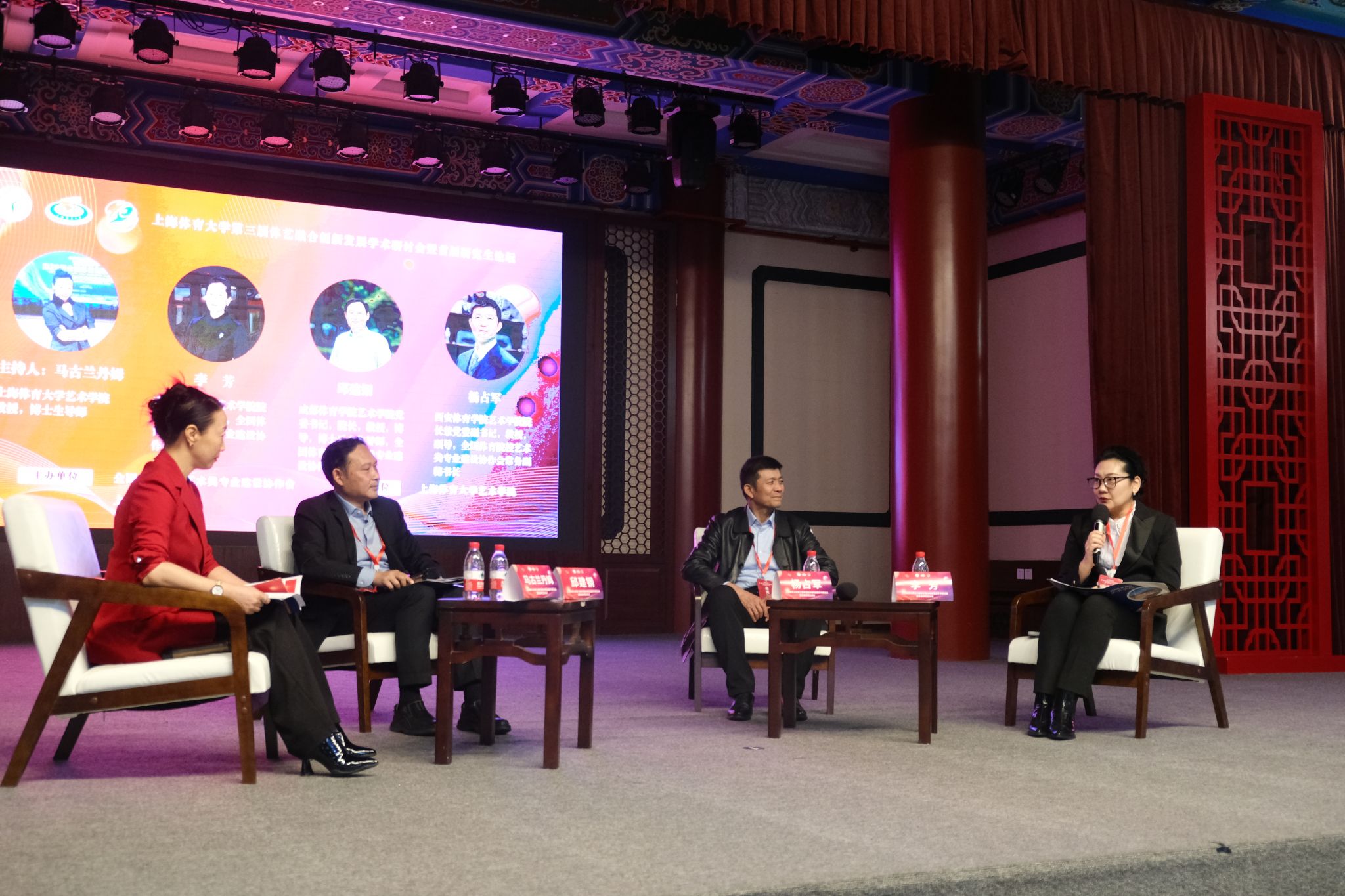 在圆桌会议暨院长论坛环节当中,成都体育学院艺术学院党委书记、院长、全国体育院校艺术类专业建设协作会秘书长邱建钢教授,西安体育学院艺术学院院长、党委副书记、全国体育院校艺术类专业建设协作会常务副秘书长杨占军教授,武汉体育学院艺术学院院长、党委副书记,全国体育院校艺术类专业建设协作会副秘书长李芳教授分别介绍了各自学院艺术学科的发展道路及办学特色,回答了主持人红足一1世足球网官方网站艺术学院舞蹈编导专业教授马古兰丹姆提出的课题申报、博士点申请等问题,对体育院校艺术类专业发展提供了积极而宝贵的思路。