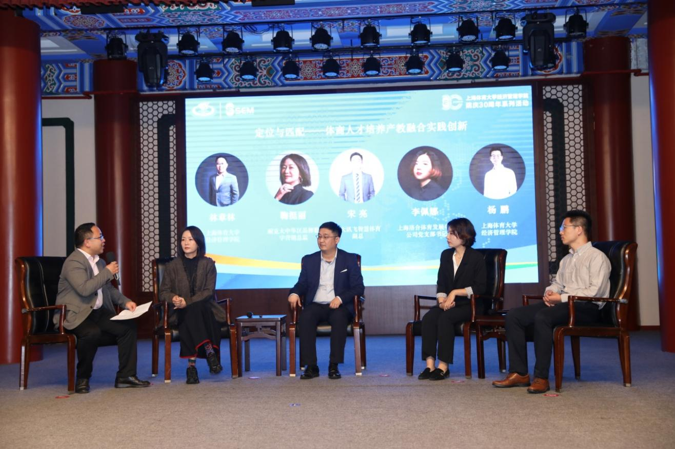 经济管理学院林章林副教授以“定位与匹配——体商人才培养产教融合实践创新”为话题,与耐克大中华区品牌数字营销总监鞠挺丽、科大讯飞智慧体育副总经理宋亮、上海洛合体育发展有限公司党支部书记李佩娜和经管学院杨鹏副教授共同进行了探讨,大家代表不同体育业态对“科创时代需要什么人、产教融合如何创新”等核心问题进行交流。