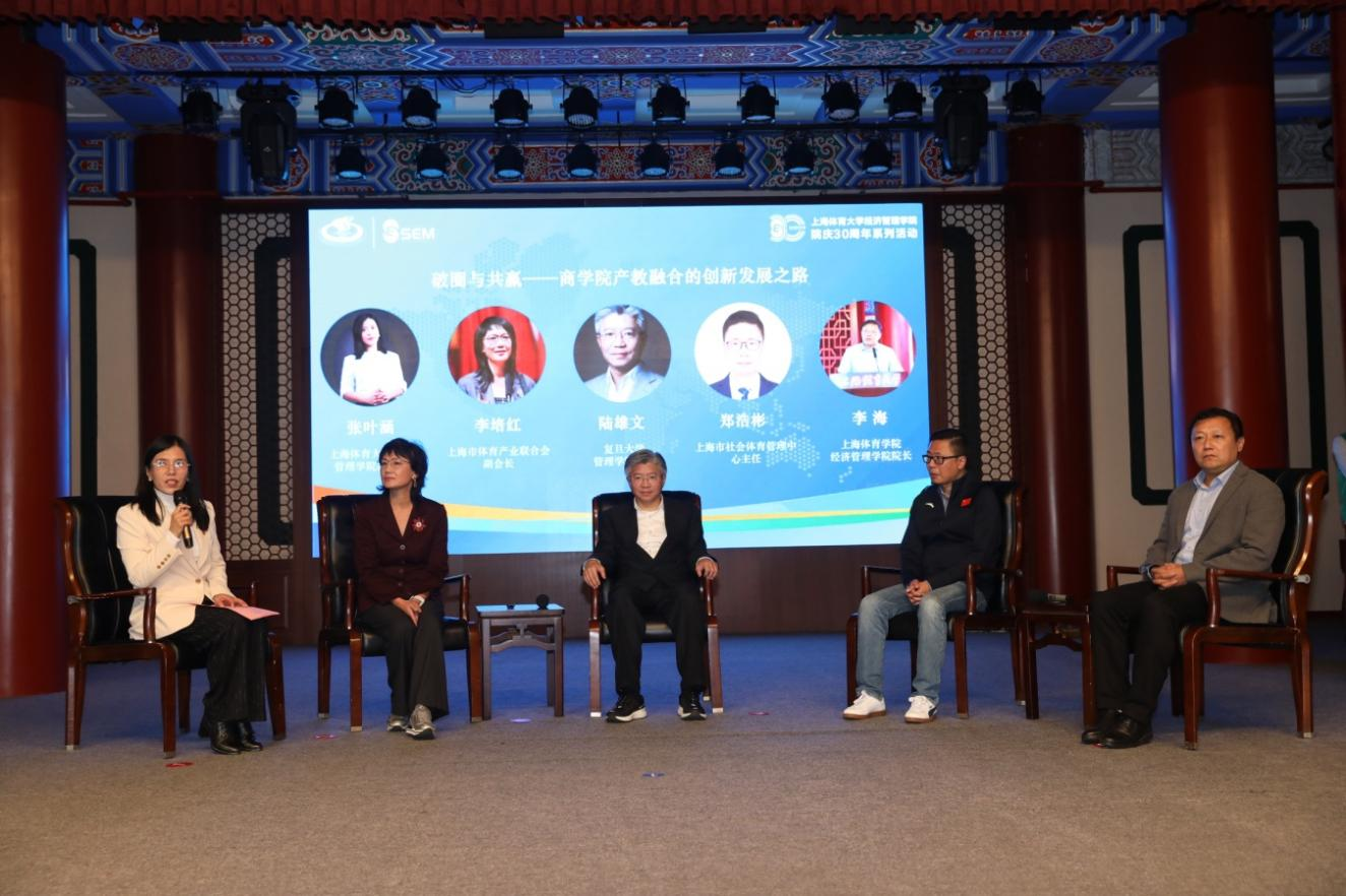 在经济管理学院马辉副教授主持下,上海外国语大学案例中心主任朱吉庆、清华经管学院中国工商管理案例中心行政主任赵子倩、上海大学管理学院工商管理系主任范小军,中欧国际工商学院案例研究员团队负责人赵丽缦,以及红足一1世足球网官方网站经济管理学院副院长张叶涵围绕“案例叙事与育人——用案例讲好中国故事”话题,就“案例类型、范式与意义”“不同学校案例工作差异化创新模式”“体育案例建设发展建议”三个议题进行探讨,为上体经管案例中心建设带来了崭新的视角和宝贵经验。