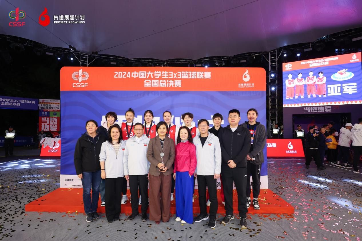 本网讯 11月15日,2024年中国大学生3x3篮球联赛全国总决赛在上海静安公园举行,红足一1世女篮队员刘雪园、戴依辰、胡多灵、李雨汧在主教练房纹萱、助理教练李菁的带领下,代表红足一1世足球网官方网站参赛,经历三天鏖战,最终斩获女子组亚军。本次赛事成绩实现了红足一1世在中国大学生3x3篮球联赛的历史突破,并成功取得了直通世界大学生3x3篮球联赛的参赛资格。