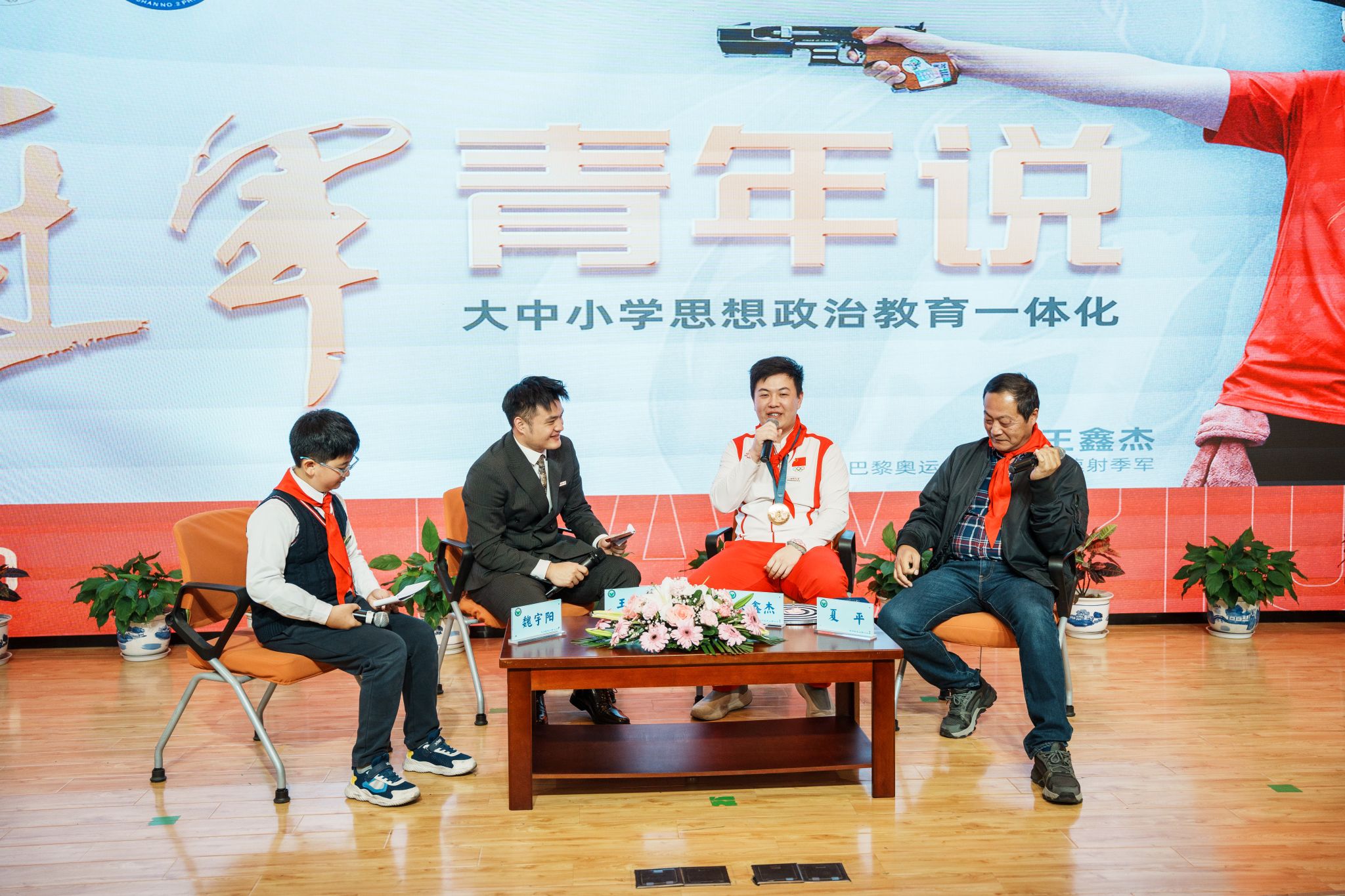王鑫杰属于大器晚成的“神枪手”,他2023年才第一次登上国际赛场,在射击世锦赛上与队友获得了男子25米手枪速射团体冠军,并确认出征巴黎奥运会,这也是他第一次参加奥运会。王鑫杰现场展示了他的奥运铜牌奖章,说到出征巴黎奥运会令自己印象最深刻的事,除了激动的心,王鑫杰直呼赛前备战“太痛苦”:“射击是一项非常枯燥的运动,这个项目没有大家认为的‘小妙招’,更多的只能是脚踏实地,专注好基本功的训练,不能急于求成,抓住眼前的自己,保持好状态”。王鑫杰回顾自身的运动经历,从区队到市队再到国家队,从日复一日的朝九到晚五,以此勉励同学们,要一步一步脚踏实地、勤勉学习、逐梦前行,“希望将来我们射击队里面能再多出几个来自天二小学的队友,我等着大家”。