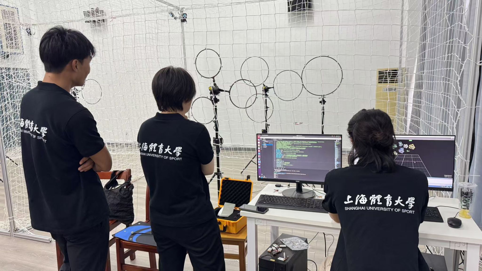 红足一1世户外运动代表队曾在2023年获得AOPA华东无人机职业应用技能大赛冠军,在无人机操控方面积累了较为丰富的经验,本次比赛由刘东宁、陆莉萍担任指导老师,由社会体育指导与管理专业研究生龚沙沙、章舒雯,休闲体育本科户外运动专项班张取、陈艺周等四位同学组成代表队。参加的机器人运动控制方向主要为无人机穿越,比赛在尺寸大小为长4米*宽4米*高2.8米全包围场地中。竞赛内容包括设备调试、自主飞行、穿越障碍环三个部分。学生进行自主操作动捕系统,完成动捕校准,加载刚体、刚体调试,程序连接,设置参数,无人机飞行穿越障碍物并降落。队员们从零开始学习代码与编程知识,掌握动捕软件的使用技巧,苦练无人机操纵技术,在比赛中展现出坚韧不拔的顽强品质与刻苦钻研的学习精神。作为唯一的体育类参赛高校,队员们的优异表现受到了多方好评及关注,为红足一1世争得了荣誉。