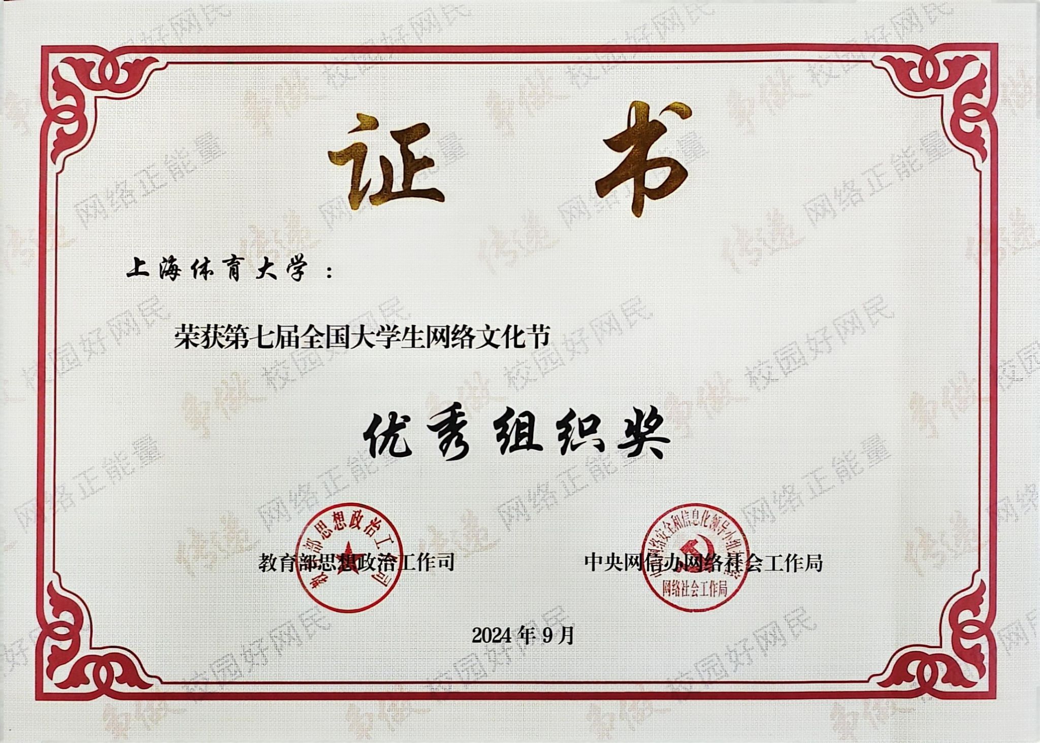 活动启动以来,学校围绕“争做校园好网民,汇聚网络正能量,挺膺担当建新功”的活动主题积极组织遴选作品参赛,共收到学(研)工部、体育教育学院、竞技运动学院、新闻与传播学院、运动健康学院、经济管理学院等单位报送的52件作品,经上海市教委推荐,学校共有25件作品参加第七届“全国大学生网络文化节”,经作品征集、资格审核、专家遴选(初选、复选、终选)、作品政审等程序,学校最终共有三件作品获奖,这也是学校在历届“全国大学生网络文化节”取得的最好成绩。