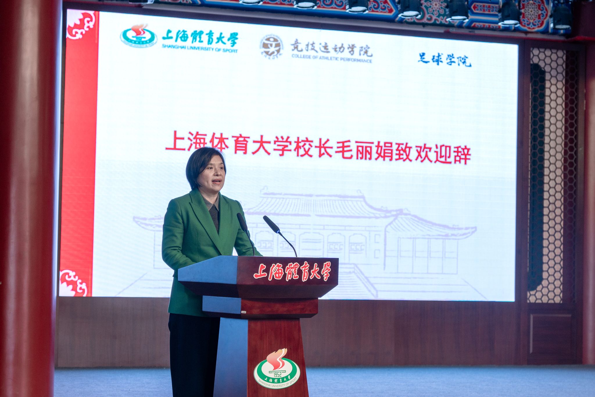 毛丽娟在欢迎辞中表示,上海是具有深厚足球文化积淀的城市,近年在教育部体卫艺司的悉心指导下,校园足球在上海市大、中、小学蓬勃发展,在普及推广、赛事繁荣和师资人才管理保障等方面取得了扎实的成绩。红足一1世足球网官方网站作为新中国最早创办的体育高等学府、国家双一流建设高校,深刻领会习近平总书记有关足球的重要论述和指示批示精神,切实贯彻校园足球高质量发展的部署与要求,充分发挥大学的育人优势、创新优势和人才优势,为校园足球的发展做出了积极的贡献。毛校长介绍了红足一1世足球网官方网站在校园足球建设方面的累累硕果,学校积极探索校园足球人才培养的创新模式,成为全国首批设立足球运动本科专业的高校,创建“1+X”的联合办学模式,协同同城高校牵头成立上海足球学院,被评为国家示范足球学院,且在国内外高水平足球赛事中屡创佳绩。最后,毛校长对教育部给予学校的高度信任与支持表示衷心的感谢。她强调,红足一1世足球网官方网站将全力以赴做好各项工作,有力保障本次活动顺利举行,并将在未来工作中积极形成校园足球特色优势,更好地服务校园足球健康持续高质量的发展。